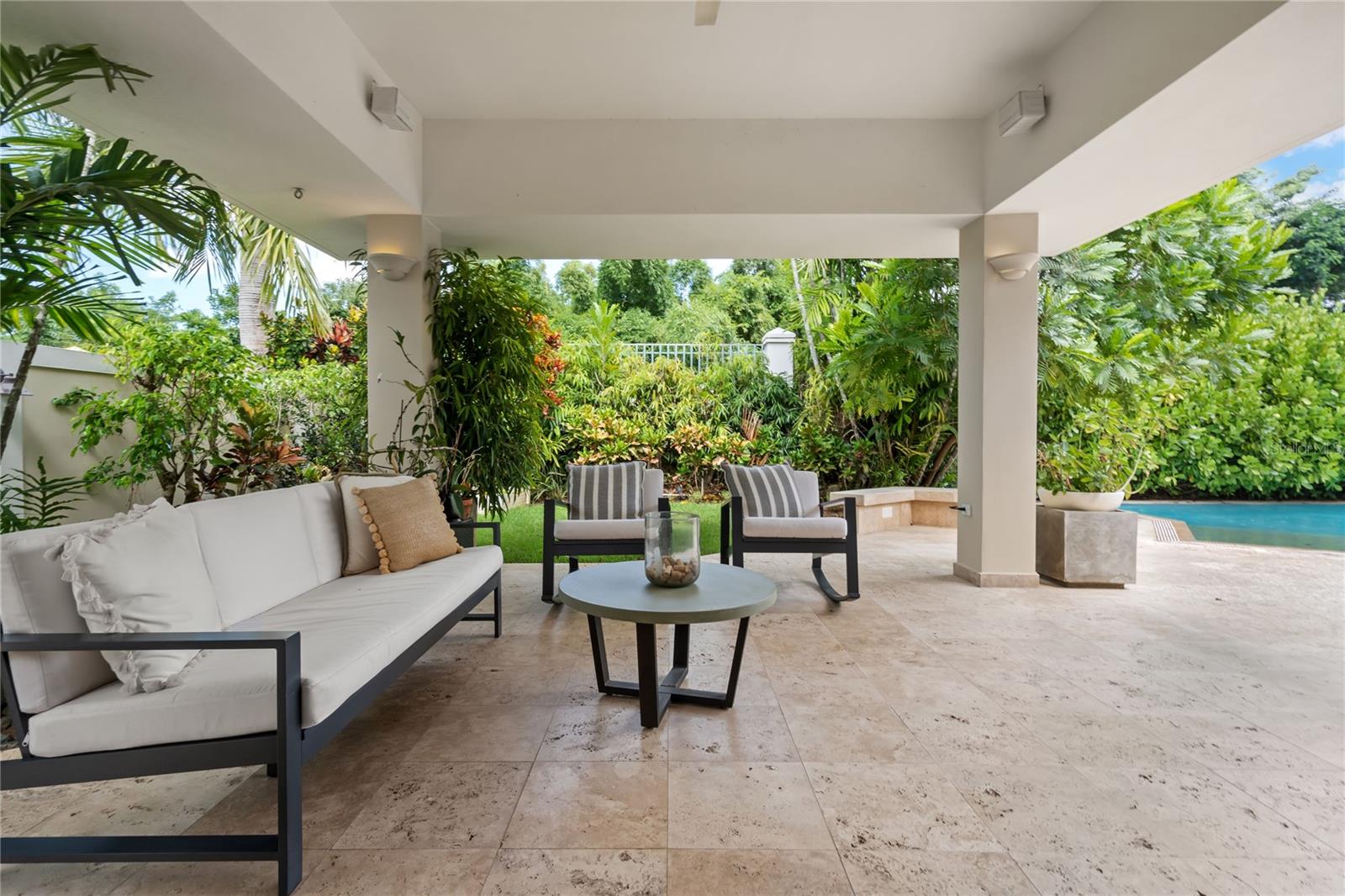 Discover beautifully balanced living in this five-bedroom, four-and-a-half-bath residence located in the sought-after gated community of Palma Real, Guaynabo. Offering just over 500 m of thoughtfully designed space, the home combines comfort, style, and abundant natural light throughout.The property is in excellent condition, featuring warm, inviting interiors that flow seamlessly from room to room. The primary suite offers his-and-her walk-in closets and a spa-inspired bathroom highlighted by a striking glass-ceiling shower. A junior suite on the second level includes a private terrace, creating a quiet and private retreat.Outdoor living is enhanced by a marble-floor open deck, a covered terrace, heated pool and serene garden views, with a park located directly behind the property providing added privacy and a lush natural backdrop rarely found within a gated community.Residents of Palma Real enjoy controlled access, 24-hour security patrol, and a prime Guaynabo location close to top schools, dining, shopping, and everyday conveniences. Community amenities include a gym, clubhouse, swimming pool with gazebo, basketball court, beach tennis and pickleball courts, a full tennis court, and a playground, all set within beautifully landscaped grounds.Additional features include a full power generator, double enclosed garage, and ample storage throughout. An exceptional opportunity to own a spacious, well-appointed home in one of Guaynabos premier residential communities.