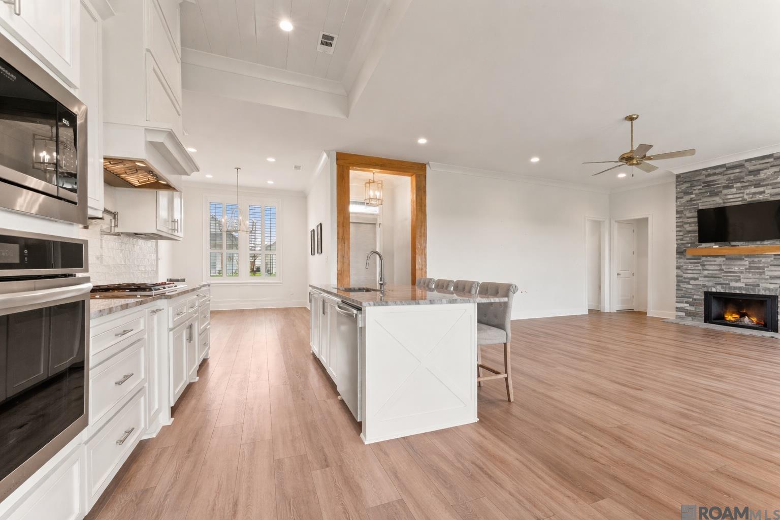 Newer construction located just off River Road with convenient access to LSU, downtown Baton Rouge, and the levee trail. This beautifully designed 3-bedroom, 2.5-bath home offers an open and functional layout with abundant natural light and a dedicated office/desk area perfect for working from home. The kitchen flows seamlessly into the living and dining areas, creating a great space for everyday living and entertaining. Step outside to enjoy the extended patio and outdoor lounge area complete with string lights and an outdoor kitchen, perfect for hosting while taking in views of the open pasture and nearby levee. Additional highlights include a rare third garage bay and quality finishes throughout. A wonderful opportunity to own a like-new home in a prime Baton Rouge location near LSU. Property is also available for sale. Contact listing agent for details.