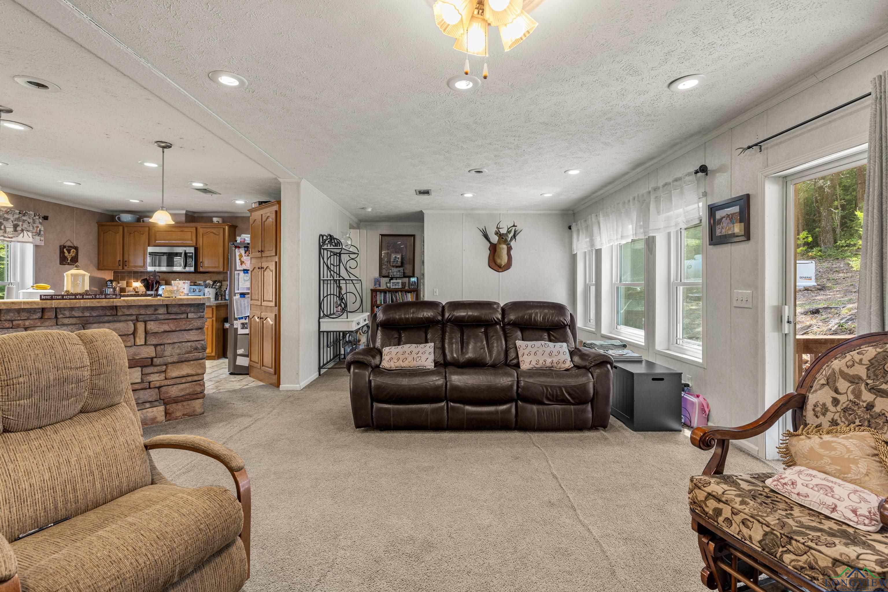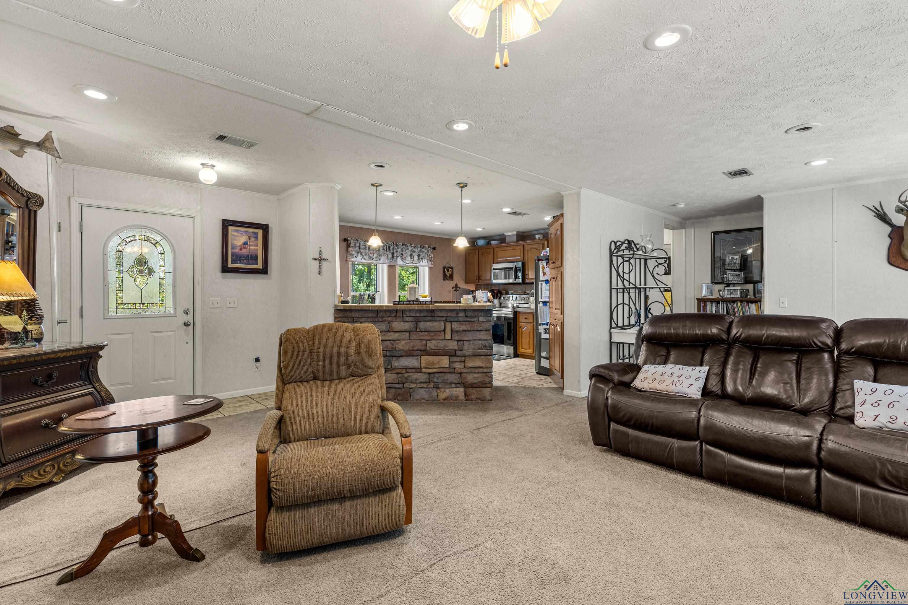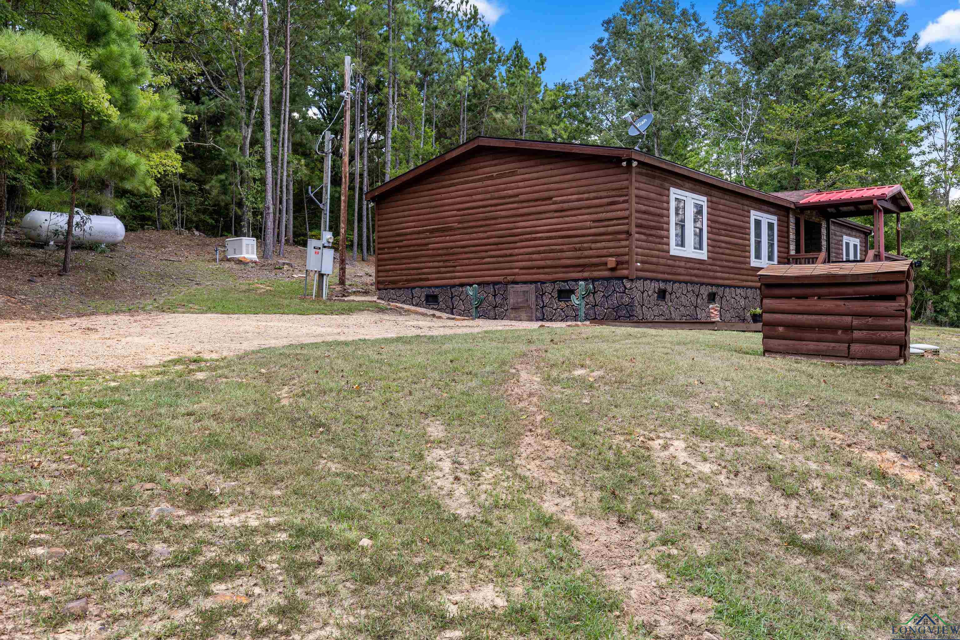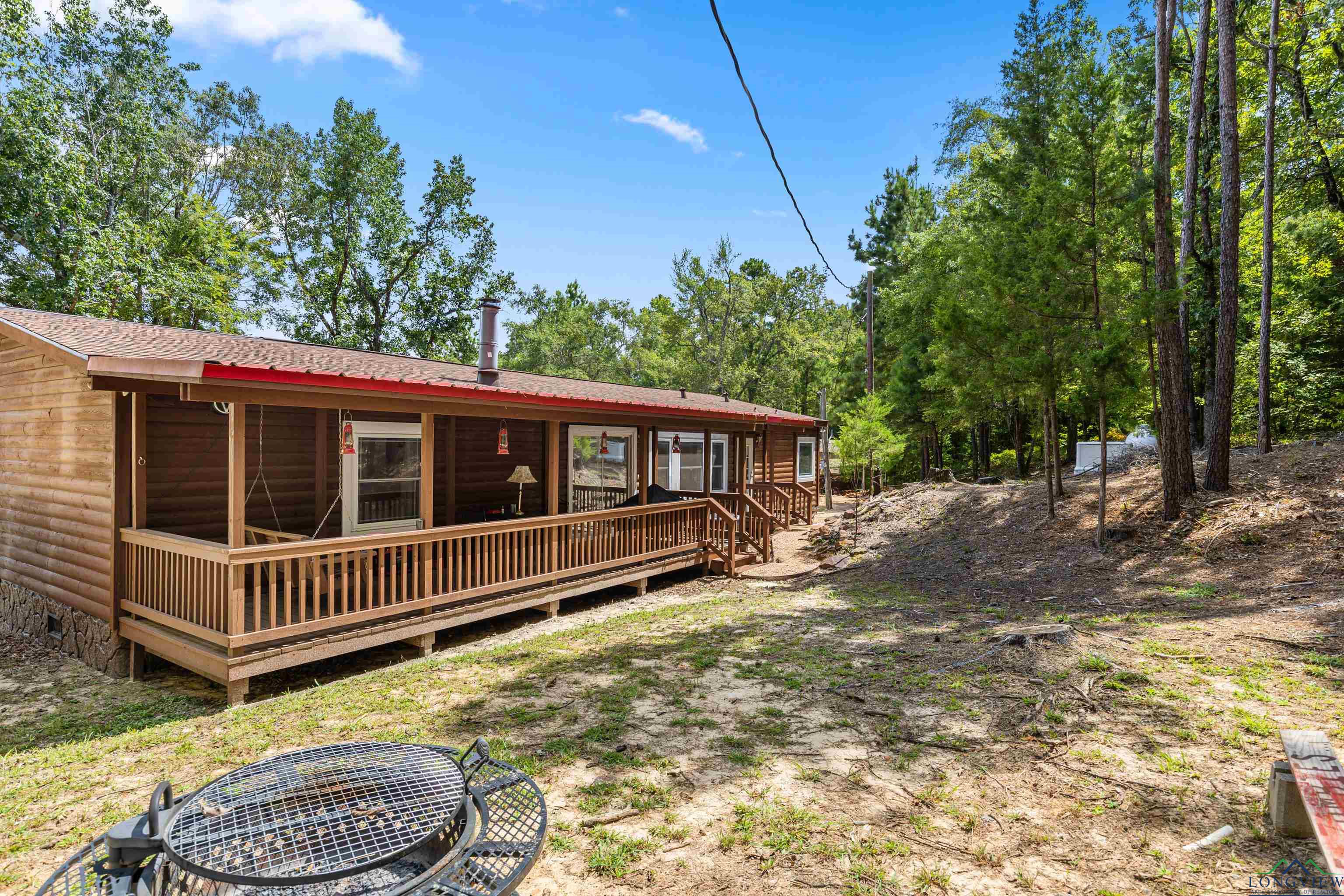 Discover peaceful county living in this well maintained 3 bedrooms, 2 bath manufactured home situated on 4.020 acres in the highly sought after Hallsville ISD. This one-owner home features a split bedroom floor plan with a spacious open living and dining area highlighted by a cozy fireplace. The kitchen offers an island for added prep space and storage, perfect for family gatherings or entertaining. Enjoy outdoor living on both the front and back covered porches, overlooking the beautiful acreage. The exterior boasts decorative log-style siding and a welcoming stone-accent front entry. A small shed and generator convey with the property, and the home also offers a newer roof for peace of mind. Whether you are looking for a recreational retreat or a private homestead, this property provides plenty of space and opportunity. Don't miss your chance to own acreage in this desirable area with room to grow and enjoy the quiet countryside lifestyle.
