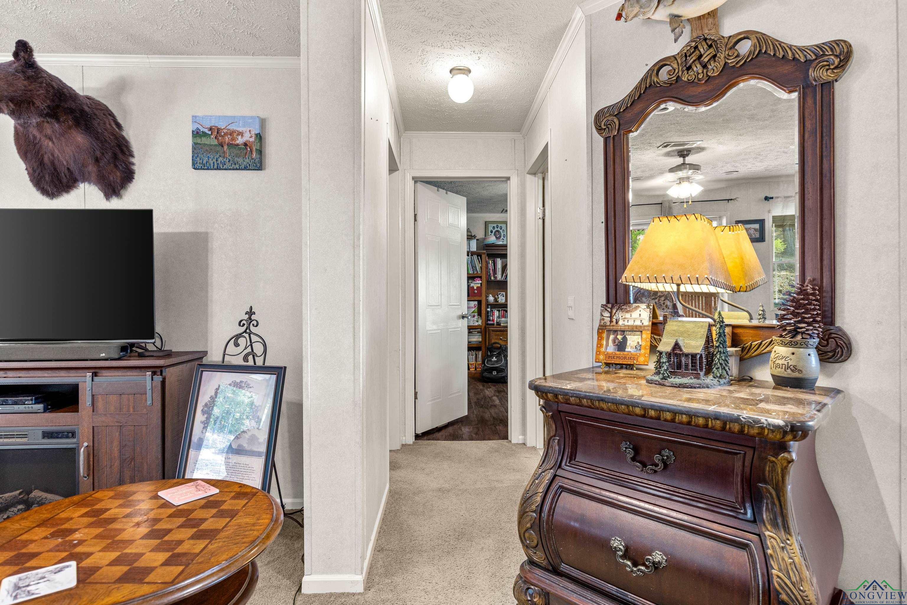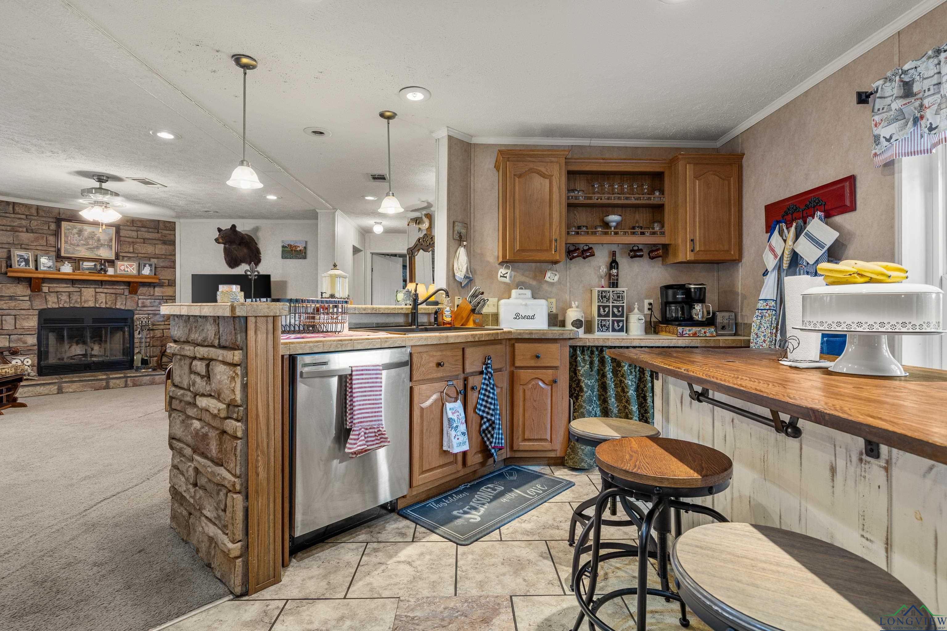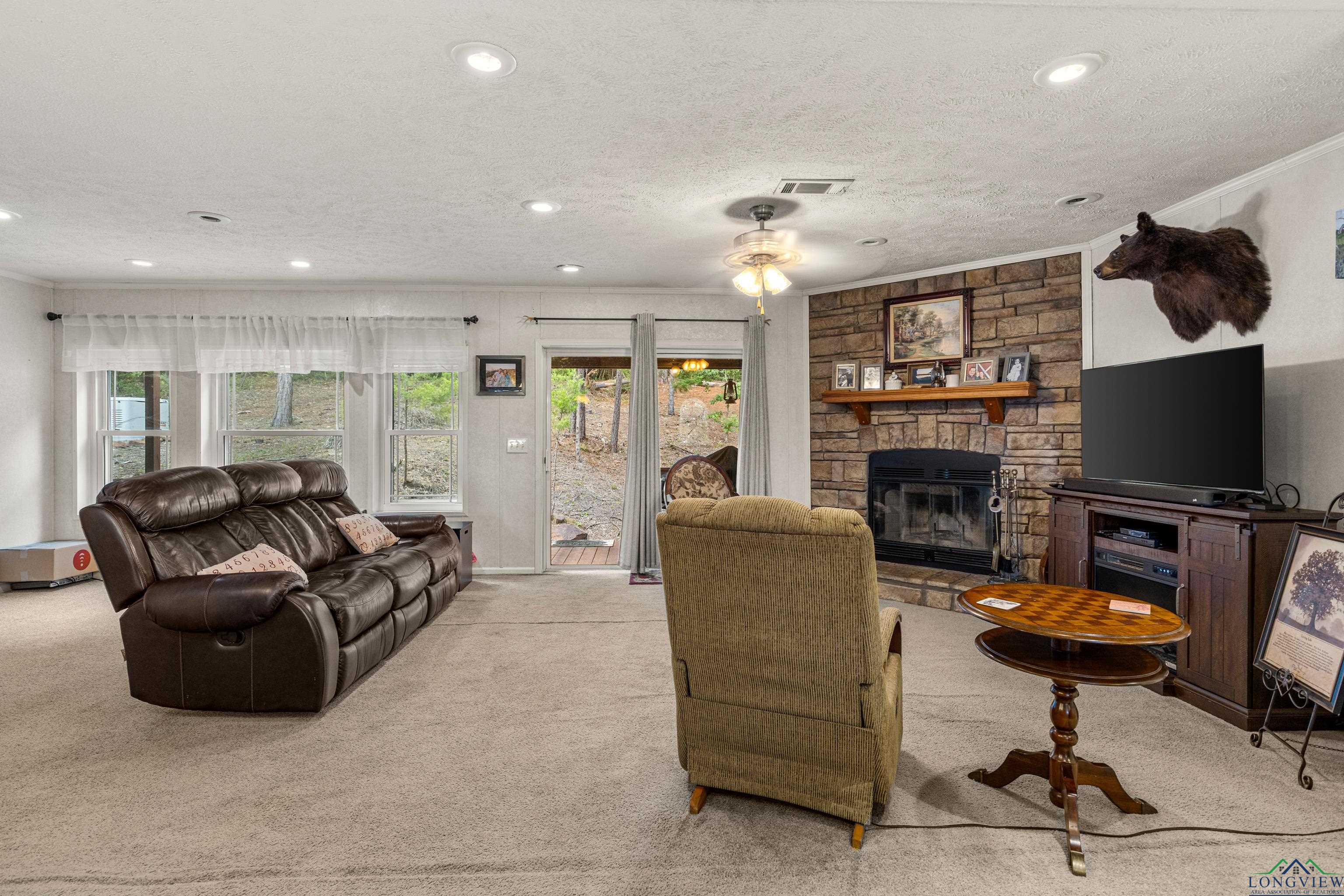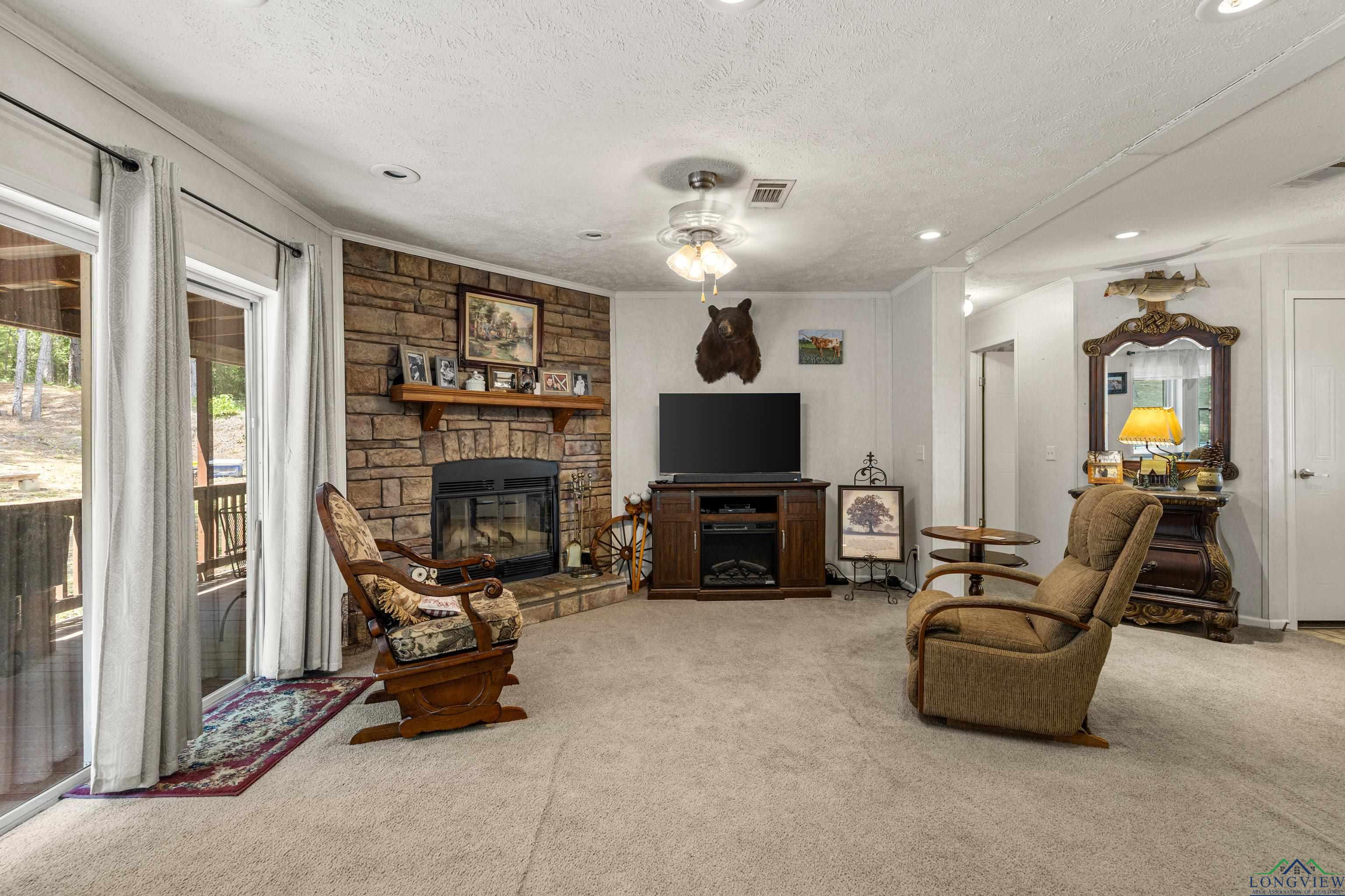 Discover peaceful county living in this well maintained 3 bedrooms, 2 bath manufactured home situated on 4.020 acres in the highly sought after Hallsville ISD. This one-owner home features a split bedroom floor plan with a spacious open living and dining area highlighted by a cozy fireplace. The kitchen offers an island for added prep space and storage, perfect for family gatherings or entertaining. Enjoy outdoor living on both the front and back covered porches, overlooking the beautiful acreage. The exterior boasts decorative log-style siding and a welcoming stone-accent front entry. A small shed and generator convey with the property, and the home also offers a newer roof for peace of mind. Whether you are looking for a recreational retreat or a private homestead, this property provides plenty of space and opportunity. Don't miss your chance to own acreage in this desirable area with room to grow and enjoy the quiet countryside lifestyle.