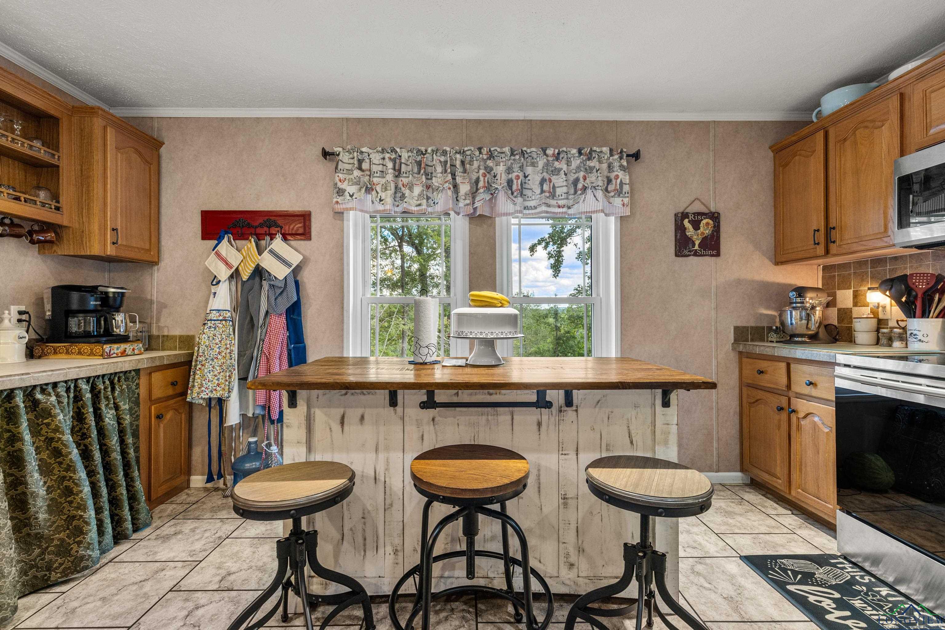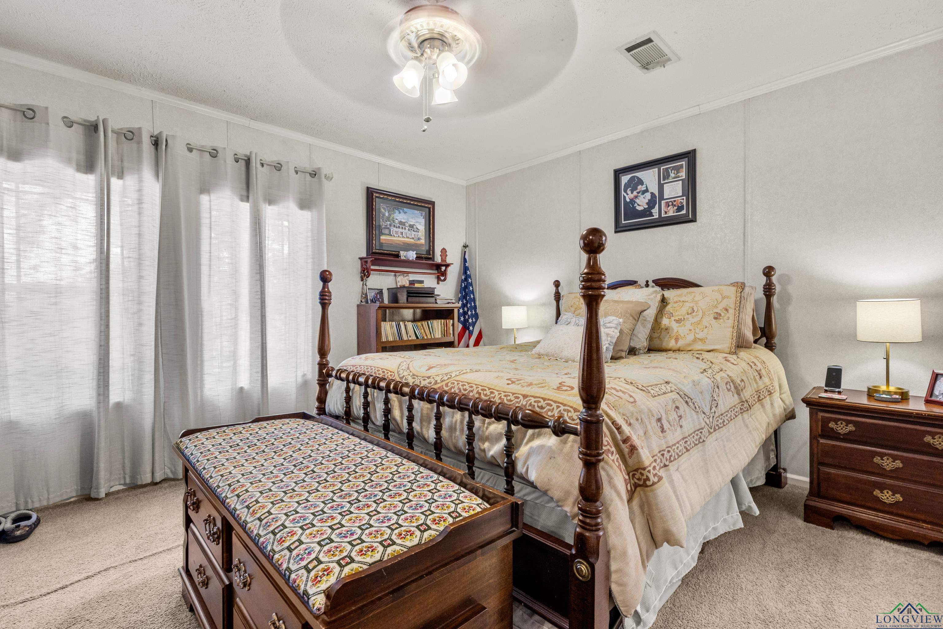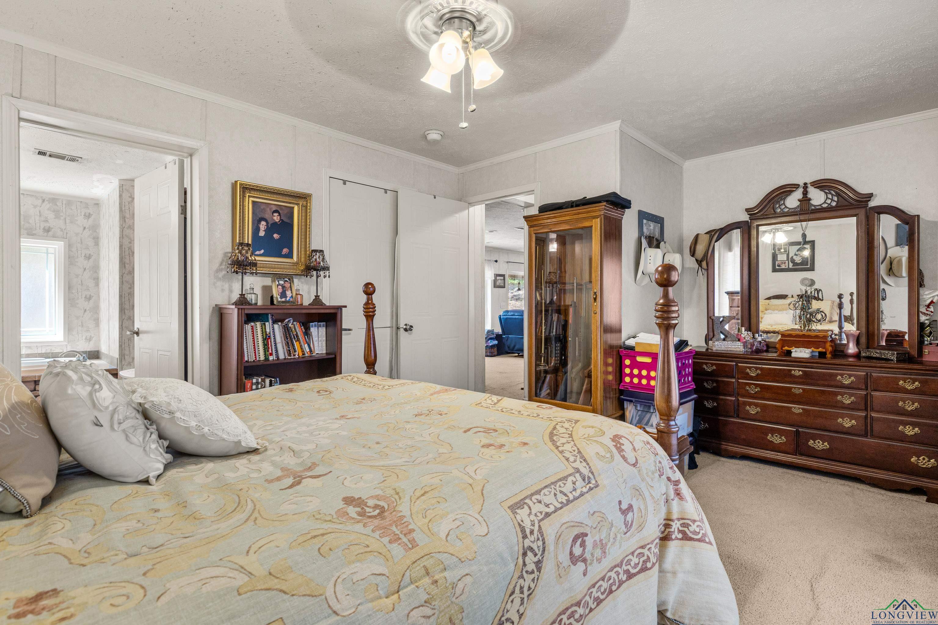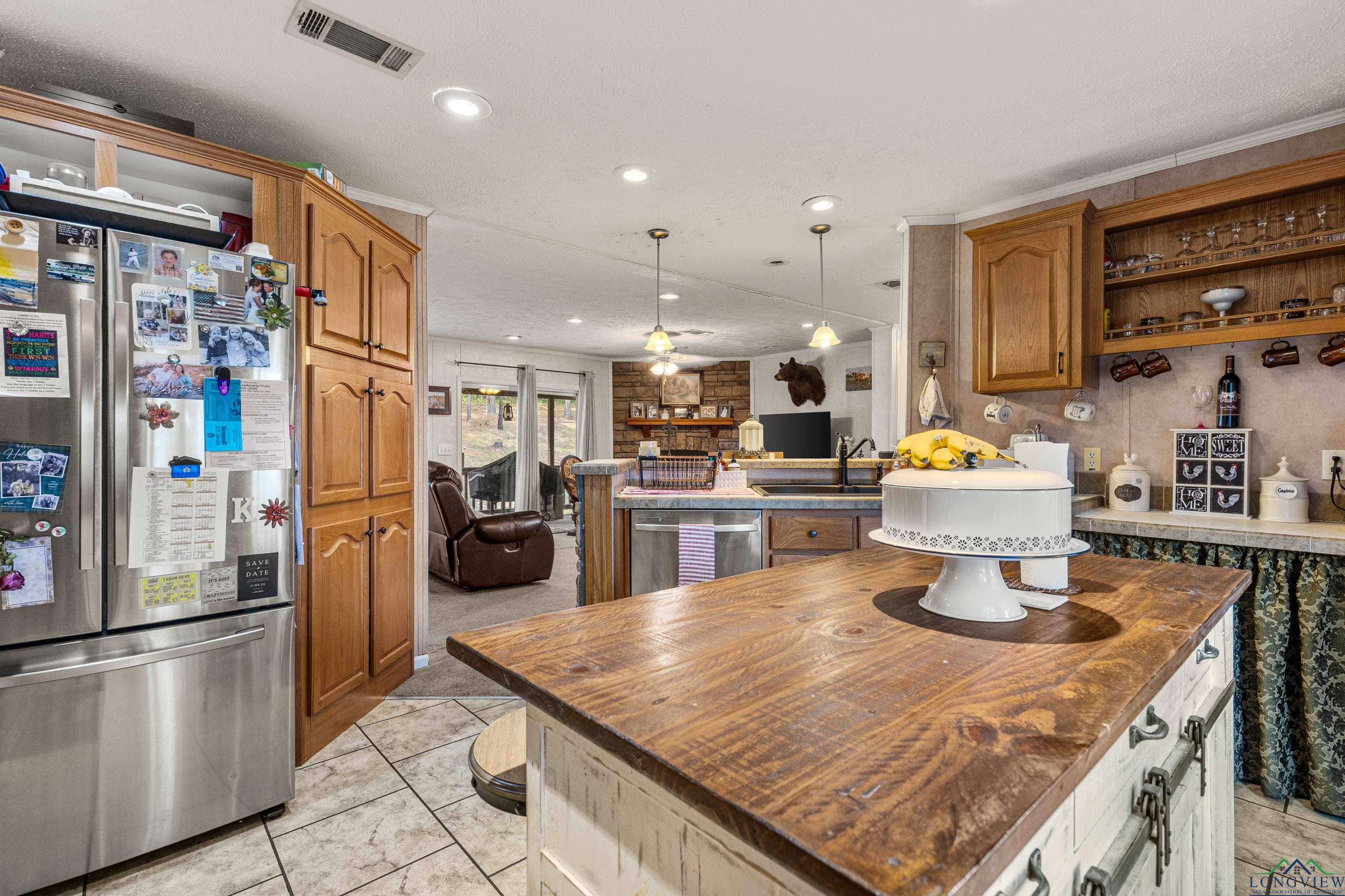 Discover peaceful county living in this well maintained 3 bedrooms, 2 bath manufactured home situated on 4.020 acres in the highly sought after Hallsville ISD. This one-owner home features a split bedroom floor plan with a spacious open living and dining area highlighted by a cozy fireplace. The kitchen offers an island for added prep space and storage, perfect for family gatherings or entertaining. Enjoy outdoor living on both the front and back covered porches, overlooking the beautiful acreage. The exterior boasts decorative log-style siding and a welcoming stone-accent front entry. A small shed and generator convey with the property, and the home also offers a newer roof for peace of mind. Whether you are looking for a recreational retreat or a private homestead, this property provides plenty of space and opportunity. Don't miss your chance to own acreage in this desirable area with room to grow and enjoy the quiet countryside lifestyle.