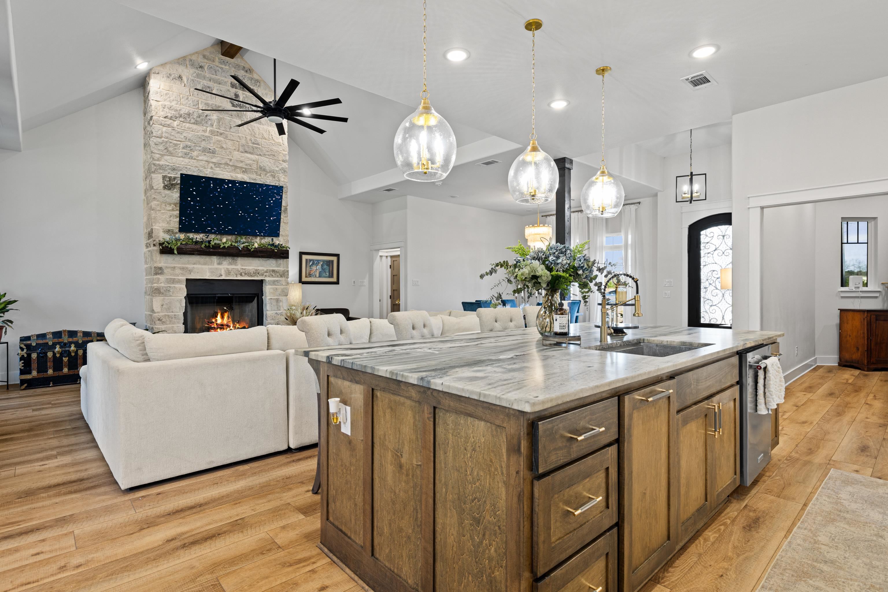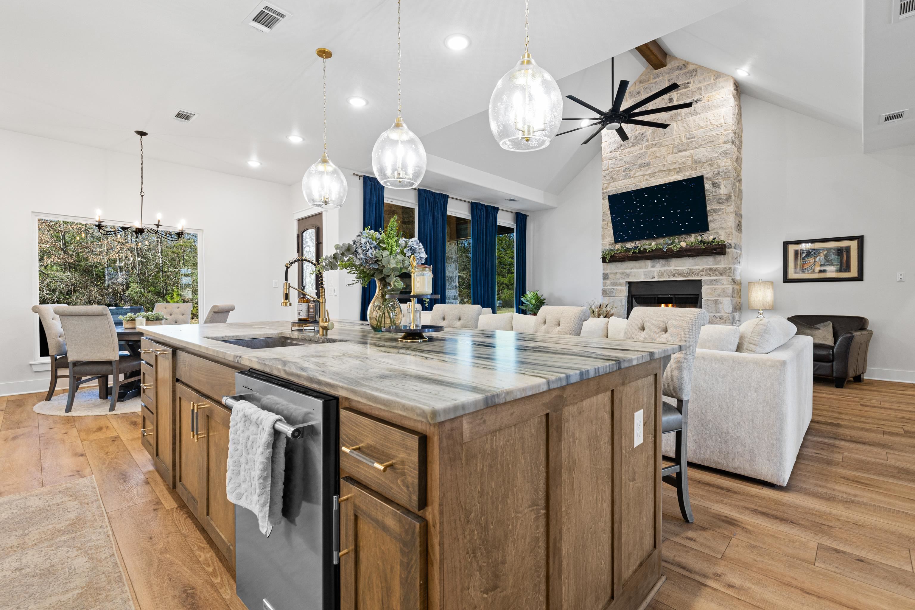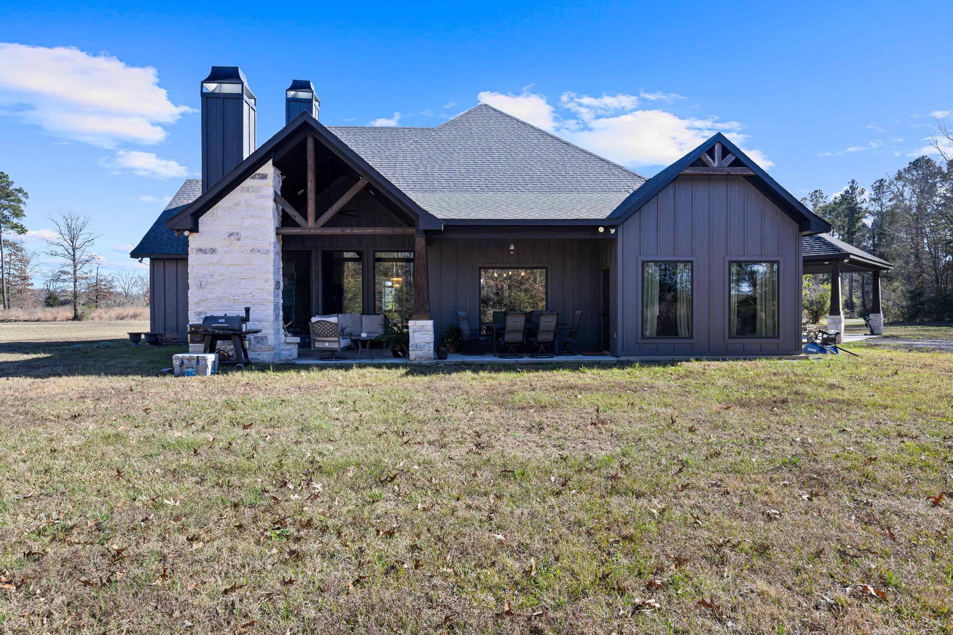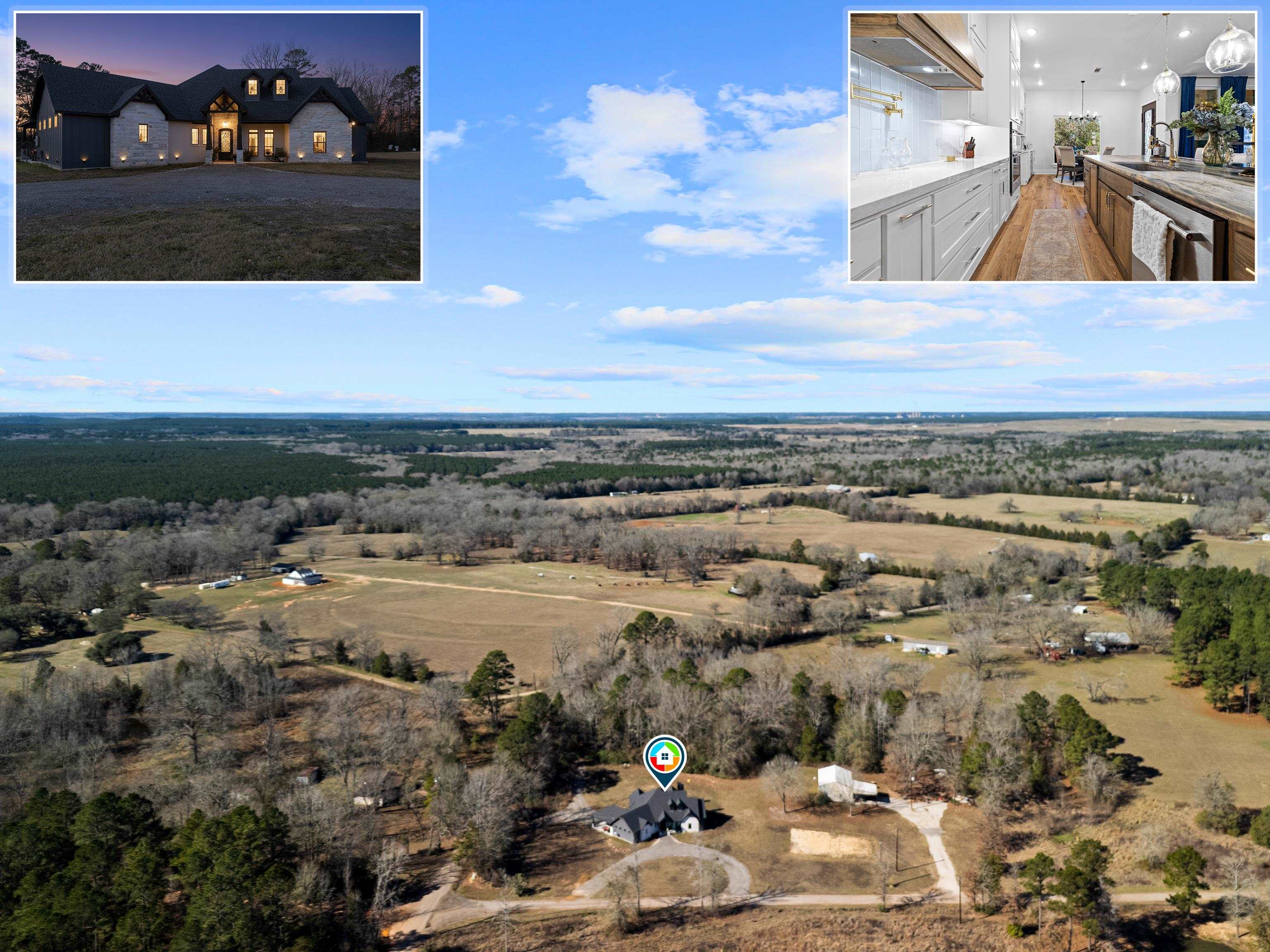 Luxury living meets peaceful East Texas in this exceptional high-end home, built just two years ago in the heart of Beckville. This beautifully crafted 3-bed, 2-bath residence sits on 1.96 acres and features 2,110 sq ft of heated and cooled living space with 3,996 sq ft under roof, blending modern design with functional comfort. Inside, youll find tall ceilings, an open-concept layout, and premium finishes throughout. The chefs kitchen impresses with Quartzite countertops, sleek porcelain surfaces with an invisible induction cooktop, high-end appliances, and a large island perfect for cooking and entertaining. The split-bedroom design provides privacy, featuring two walk-in closets, a spa-inspired primary bath, and a hidden security room for added peace of mind. Luxury vinyl plank flooring flows throughout, creating a warm, cohesive aesthetic. Outdoor living is equally elevated with a spacious covered patio and a beautiful outdoor fireplaceideal for quiet East Texas evenings or entertaining guests. Quality craftsmanship is evident in every detail, offering a level of luxury rarely found in newer construction in this area. Located in the desirable Beckville community, this home provides privacy, upscale design, and convenient access to nearby amenities. A true standout. This is a corporate relocation listing. Schedule your showing today. Petra Davis ExP Realty (281)825-8153