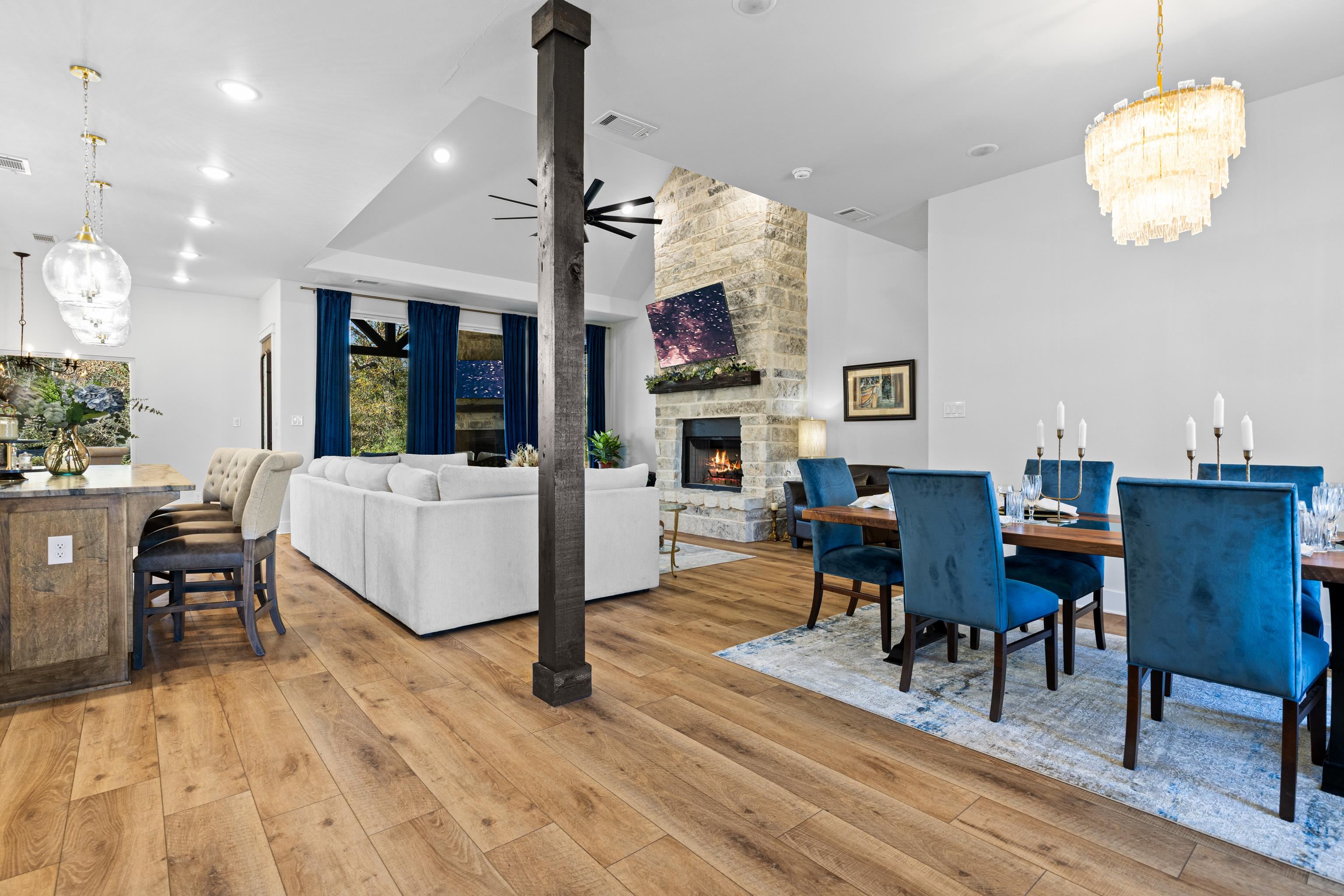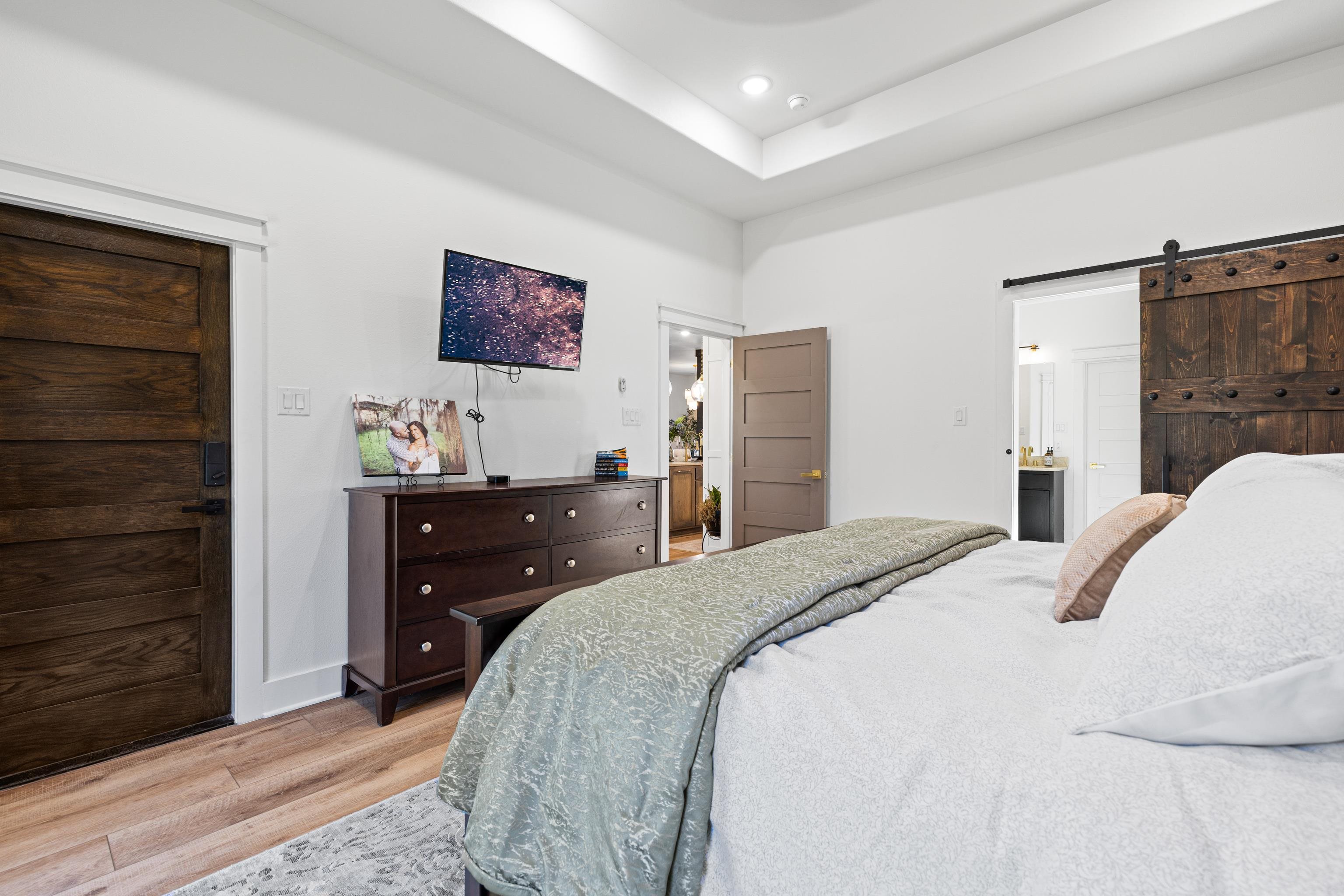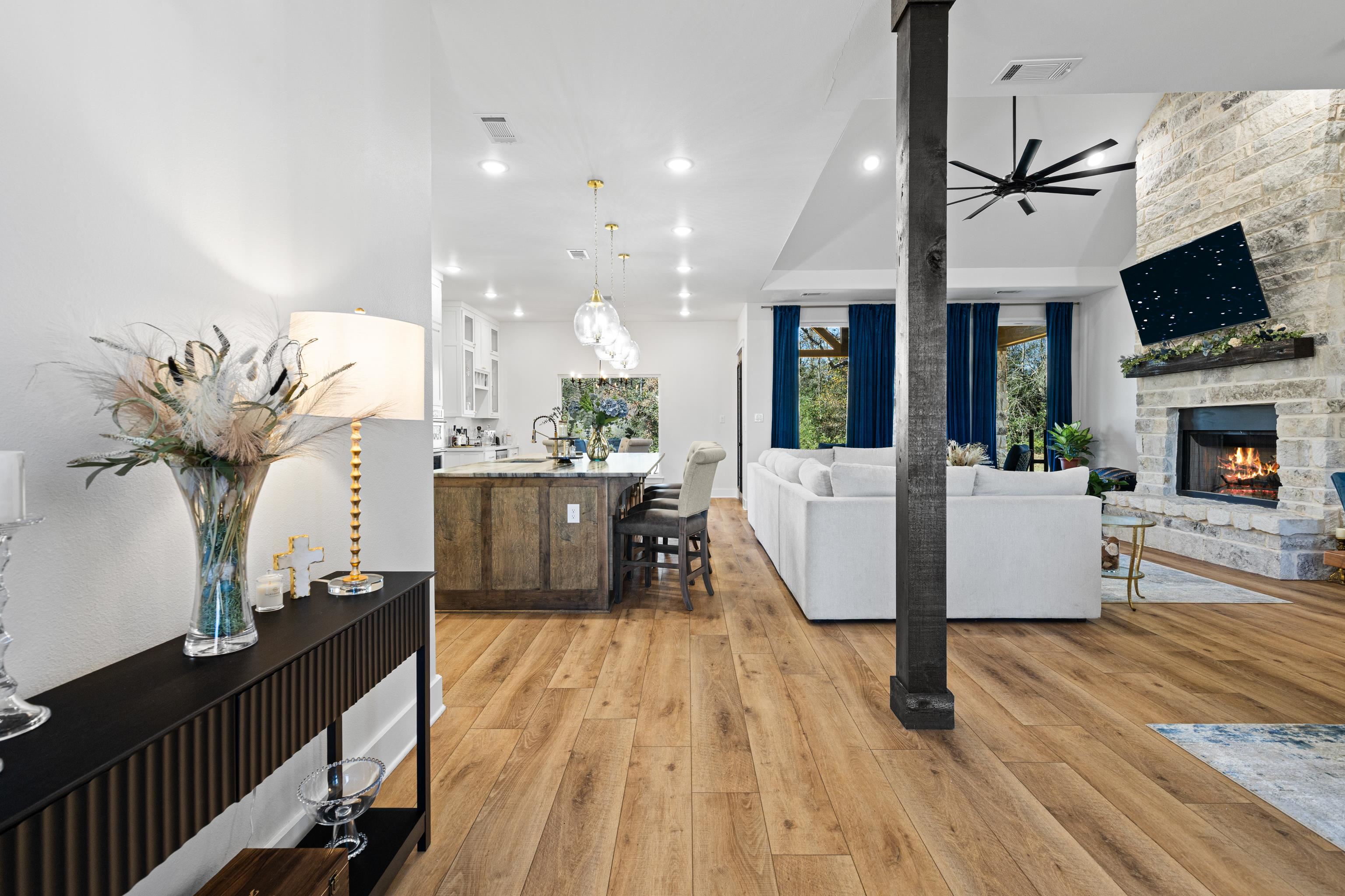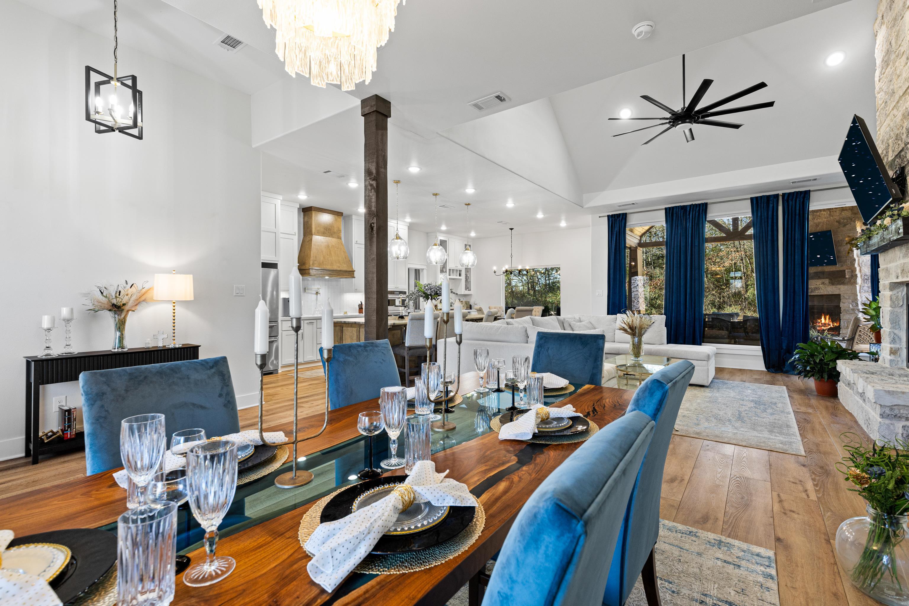 Luxury living meets peaceful East Texas in this exceptional high-end home, built just two years ago in the heart of Beckville. This beautifully crafted 3-bed, 2-bath residence sits on 1.96 acres and features 2,110 sq ft of heated and cooled living space with 3,996 sq ft under roof, blending modern design with functional comfort. Inside, youll find tall ceilings, an open-concept layout, and premium finishes throughout. The chefs kitchen impresses with Quartzite countertops, sleek porcelain surfaces with an invisible induction cooktop, high-end appliances, and a large island perfect for cooking and entertaining. The split-bedroom design provides privacy, featuring two walk-in closets, a spa-inspired primary bath, and a hidden security room for added peace of mind. Luxury vinyl plank flooring flows throughout, creating a warm, cohesive aesthetic. Outdoor living is equally elevated with a spacious covered patio and a beautiful outdoor fireplaceideal for quiet East Texas evenings or entertaining guests. Quality craftsmanship is evident in every detail, offering a level of luxury rarely found in newer construction in this area. Located in the desirable Beckville community, this home provides privacy, upscale design, and convenient access to nearby amenities. A true standout. This is a corporate relocation listing. Schedule your showing today. Petra Davis ExP Realty (281)825-8153