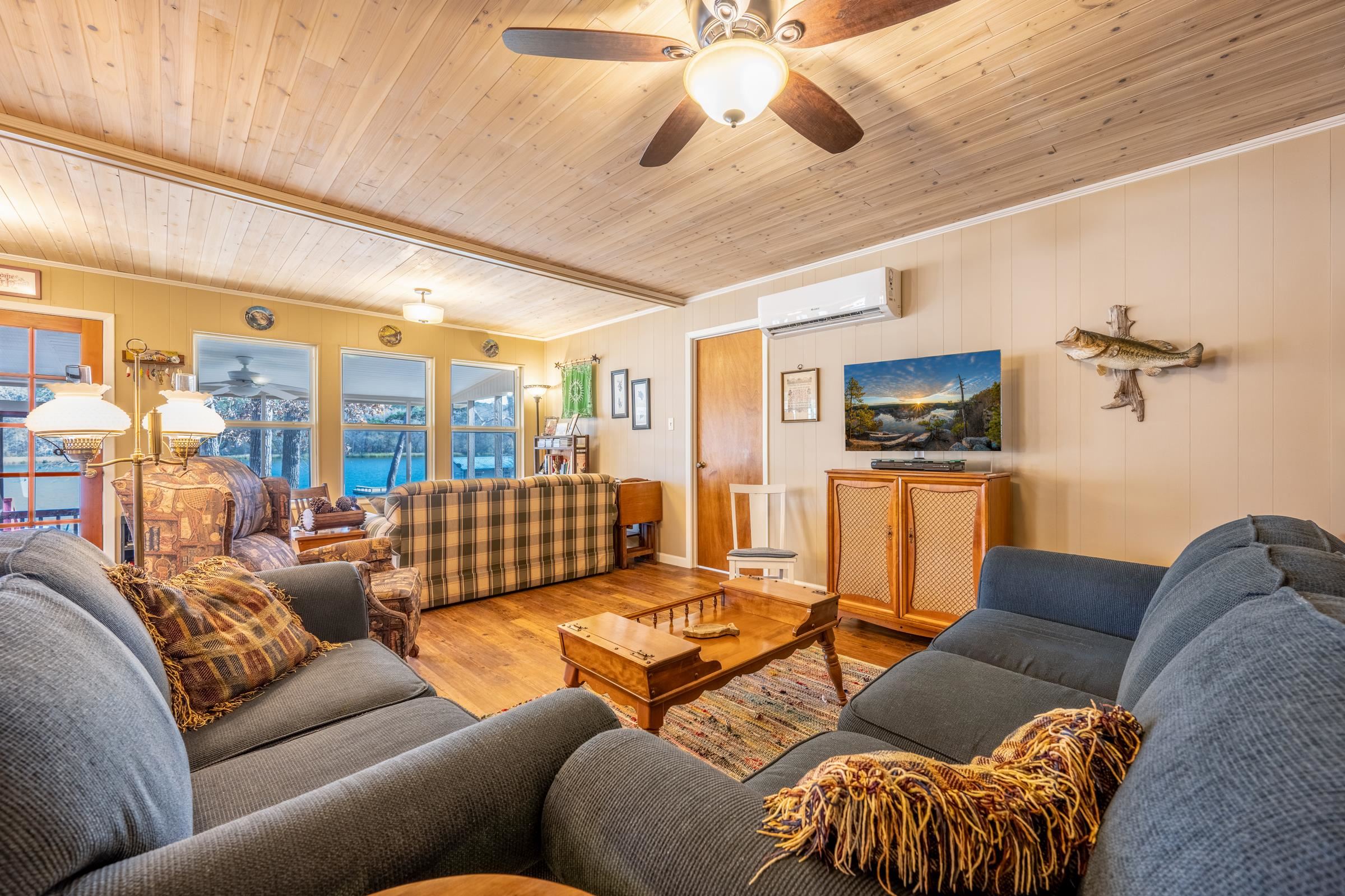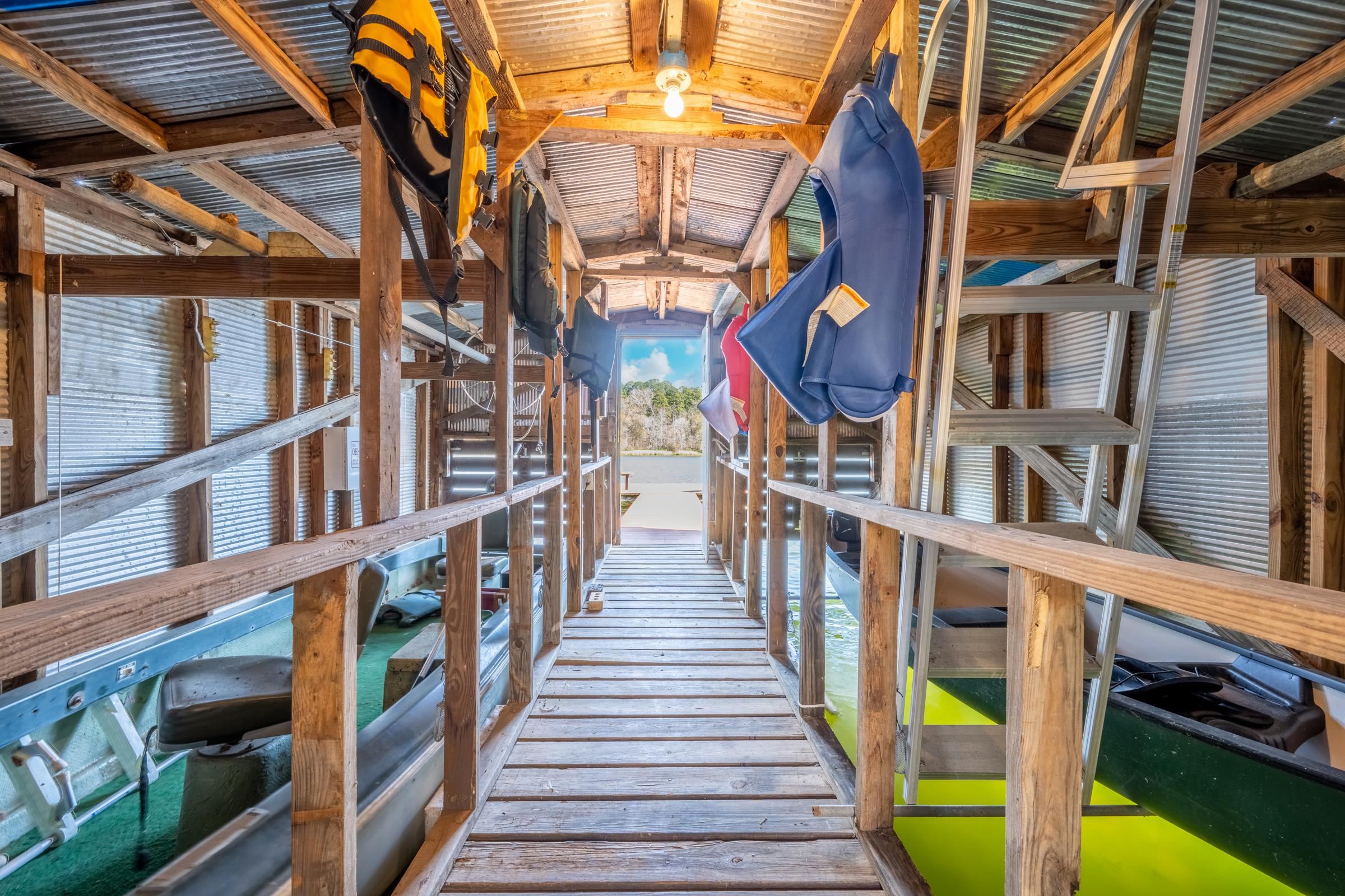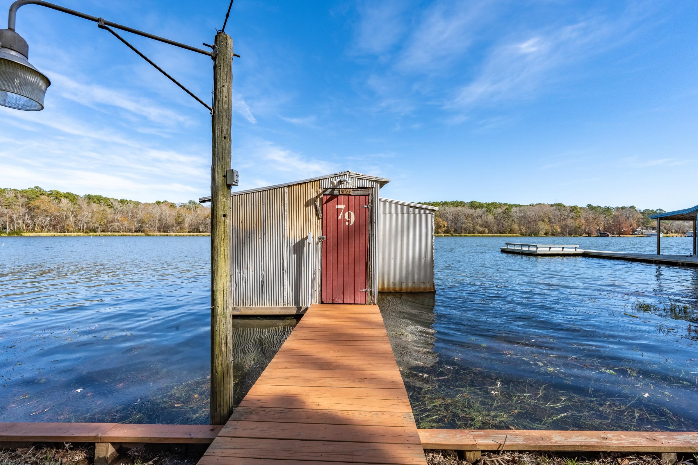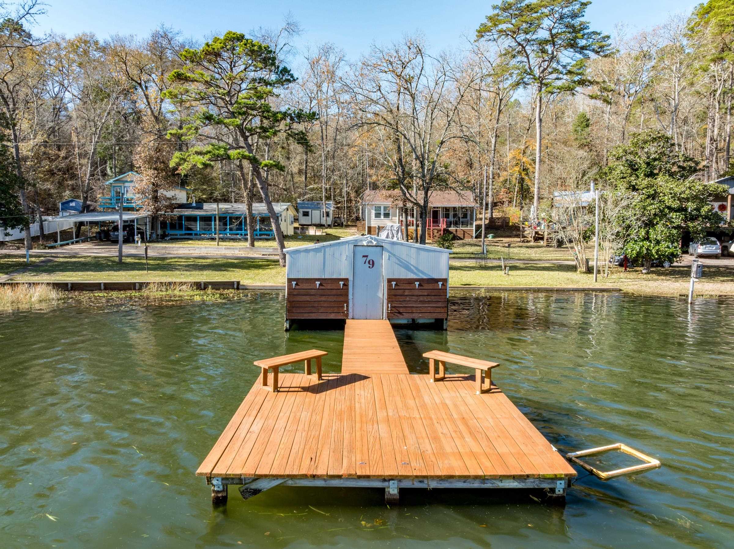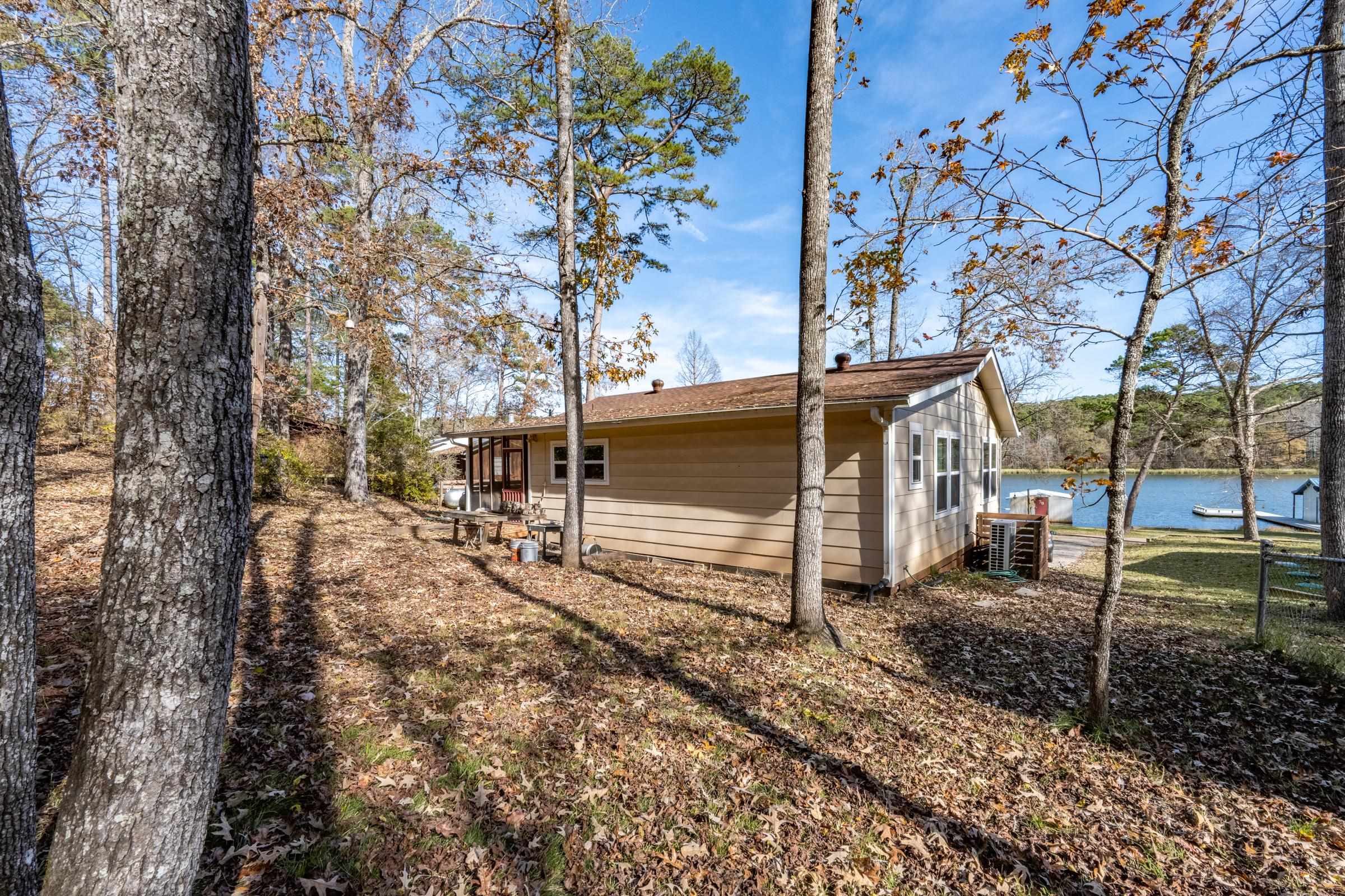 Charming updated 2-bedroom, 2 bath waterfront retreat on gated Lake Frankston, nestled among the rolling hills and towering trees of beautiful East Texas. This inviting home features an open floor plan that lives large, with a comfortable dining area and a cozy screened front porch offering peaceful open water lake viewsperfect for morning coffee or evening relaxation. Another screened porch is located at back of house. Situated on a gently sloping, tree-shaded lot, the 1140 sq. ft. home is conveniently located across a private road from the boathouse with two stalls, providing easy lake access for fishing and boating. The well-maintained, stocked approximately 100-acre lake is ideal for fishing boats, kayaks, and paddle boats, preserving the quiet serenity that defines this picturesque setting. Take your golf cart for a 3.2-mile cruise around the lake or perfect walking path! Luxury vinyl plank floors throughout for easy maintenance, plenty of storage with generous closets plus a storage shed in back yard. Recent updates include new windows, electrical box, roof, and PEX plumbing, ensuring low maintenance living for years to come. Enjoy a tranquil lakeside lifestyle just 30 minutes from Tyler, 10 minutes from Frankston or Palestine, and approximately 1.5 hours from Dallas. A perfect full-time residence or weekend getaway!