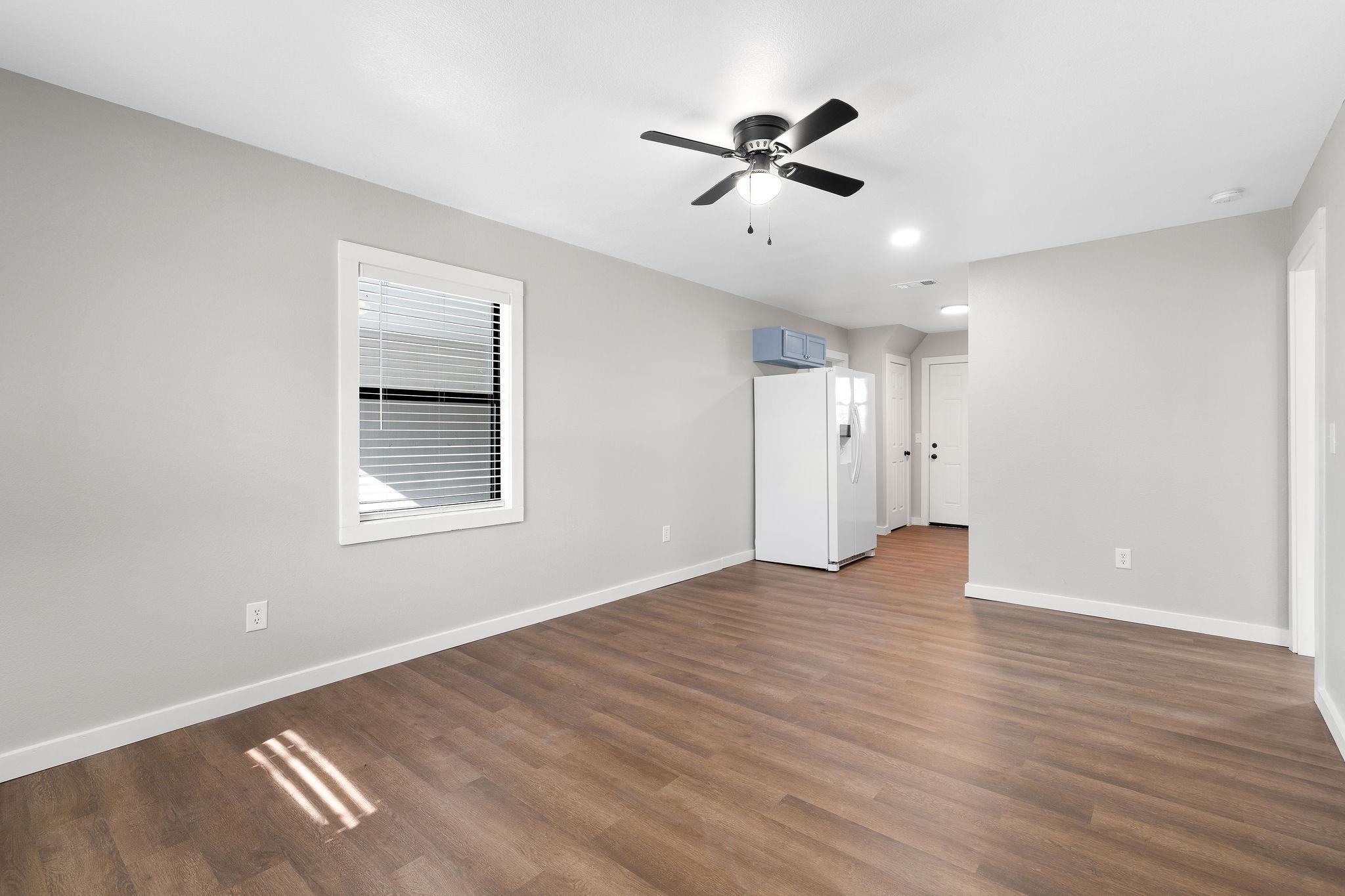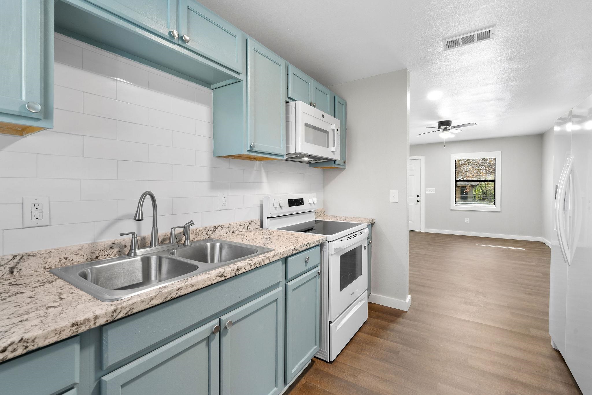 Adorable Home Now Available This 2 Bedroom, 1 bath property has been renovated and is ready for you to make it your home. Neutral paint used on the walls pops against the white trim and the newly installed flooring throughout makes this one feel larger. Splashes of muted blue cabinets adds a touch of warmth and personality to the space. Interior Highlights - Galley style kitchen - Kitchen appliance package includes Stove, Microwave and Refrigerator - Interior laundry room added with cabinets for extra storage - Tile shower with bathtub combo Exterior Highlights - Attached carport - Fenced backyard - Oversized lot Ready to claim this one as your own? Reach out to schedule your showing today!