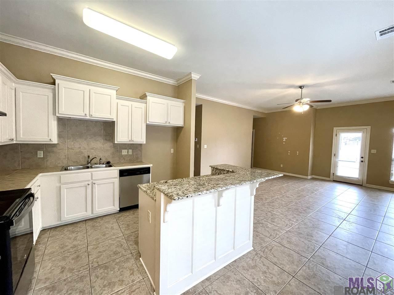 Beautiful open floor plan in the quiet, gated community of Spanish Lakes. The home features a spacious kitchen with granite countertops and a large island, new luxury vinyl plank flooring throughout all bedrooms (no carpet!), and a covered rear porch. The primary suite includes a garden tub, separate shower, and a large walk-in closet. Enjoy a community park right across the street and the convenience of being just outside Baton Rouge, but still close to LSU and city attractions. Enclosed double garage, plenty of storage, and never flooded. Schedule your showing today!