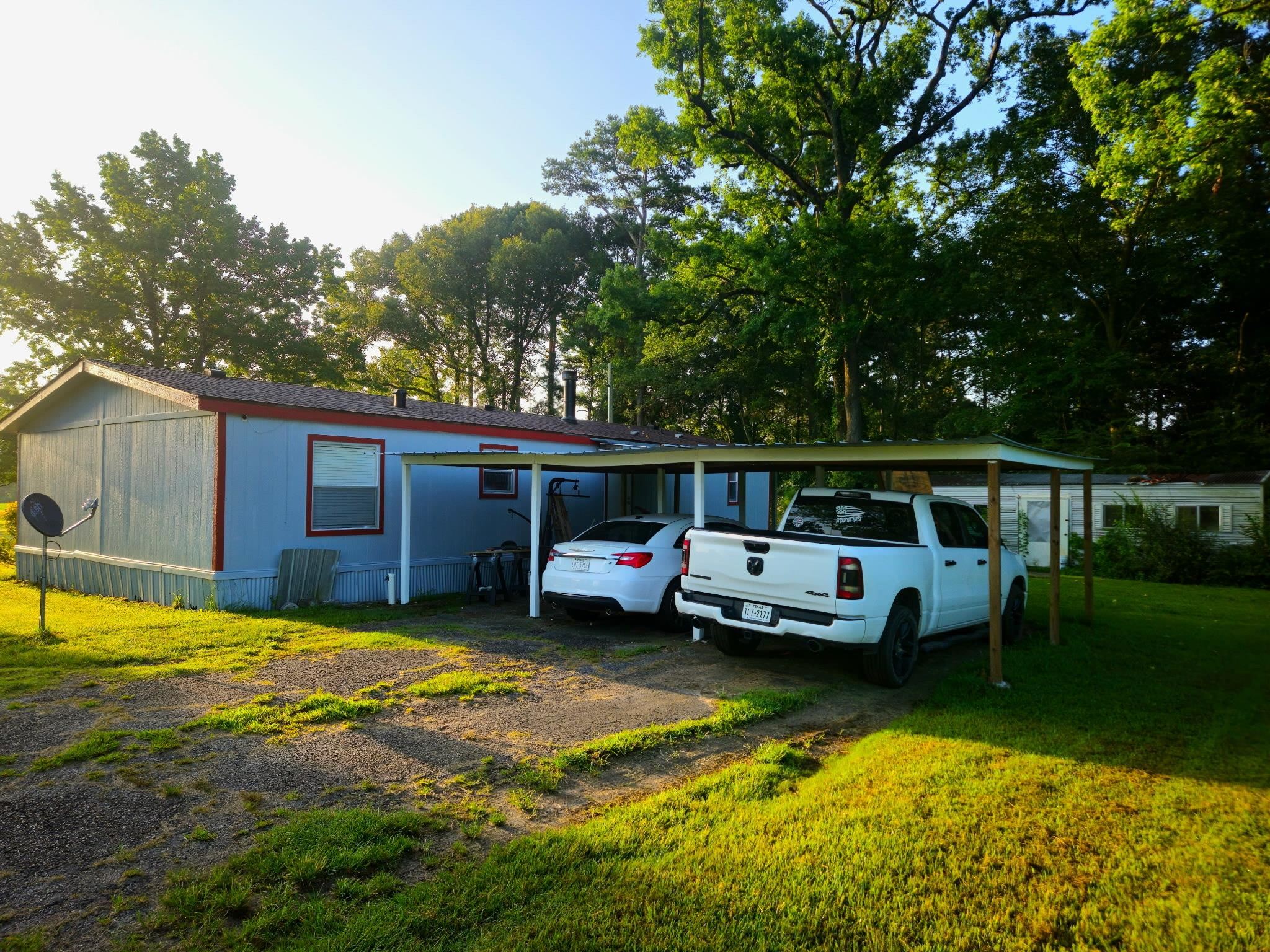 Beautiful Manufactured Housing Unit on 1.41 acres with beautiful trees located 2 miles from Timpson on Hwy 87. Roof recently replaced, new flooring, paint and appliances. New storage building and 3 car carport. Aerobic septic system.