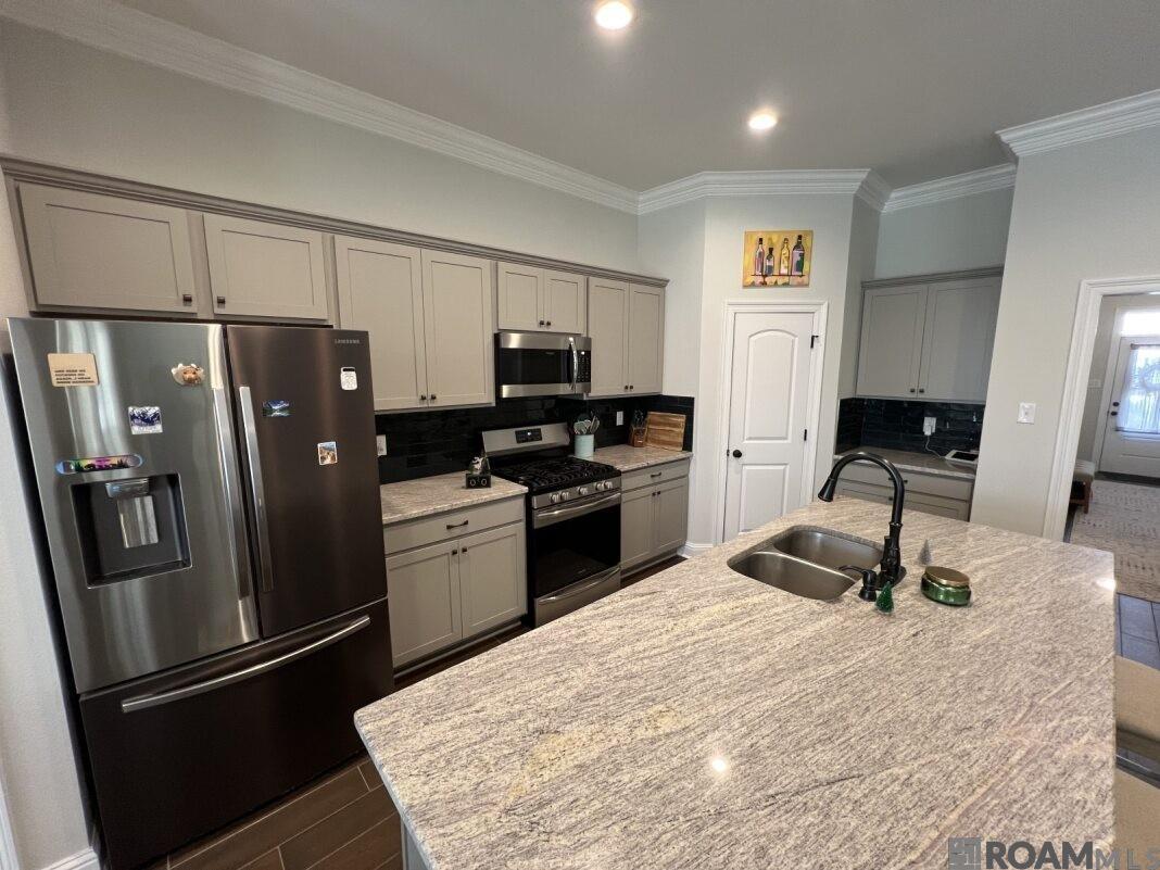 Partially Furnished Home on Sterling Oaks Dr. with Premium Features Welcome home to this beautifully maintained 3-bedroom, 2-bath residence located on a quiet no-outlet street on Sterling Oaks Dr. in Gonzales, offering both privacy and comfort. This home features tile flooring throughout the main living areas and primary suite, with cozy carpet in the secondary bedrooms. The open kitchen is designed for both everyday living and entertaining, complete with a large island, granite countertops, gas stove, refrigerator, dishwasher, microwave, generous cabinetry, and ample pantry space. The spacious primary suite is a true retreat, featuring a walk-in closet, dual vanities, and a separate soaking tub and shower. It comes partially furnished with a queen bedframe, queen memory foam mattress, nightstand, 9-drawer dresser with matching oversized mirror, a 6-cube storage center, and a 10x12 area rugperfect for a move-in-ready experience. The living room is thoughtfully furnished with an 8-seat dining table, a modern gray sectional, coffee table, and a 75 wall-mounted TV, ideal for relaxing or hosting guests. A secondary bedroom also includes a 30 wall-mounted TV. Ceiling fans throughout the home add comfort year-round. Step outside to enjoy the covered patio and fully fenced backyardperfect for outdoor living. The garage is equipped with battery-powered lawn equipment, including a mower, leaf blower, and weed eater, making lawn care simple and convenient. For added peace of mind, the home is equipped with a home security system. Security Deposit Alternative Available: This property is eligible for Obligo, a security deposit alternative that allows qualified residents to move in with a non-refundable monthly fee instead of a traditional cash security deposit. Obligo offers added flexibility and affordability at move-in. Participation is subject to approval. This well-appointed home combines style, functionality, and convenience in a serene Gonzal