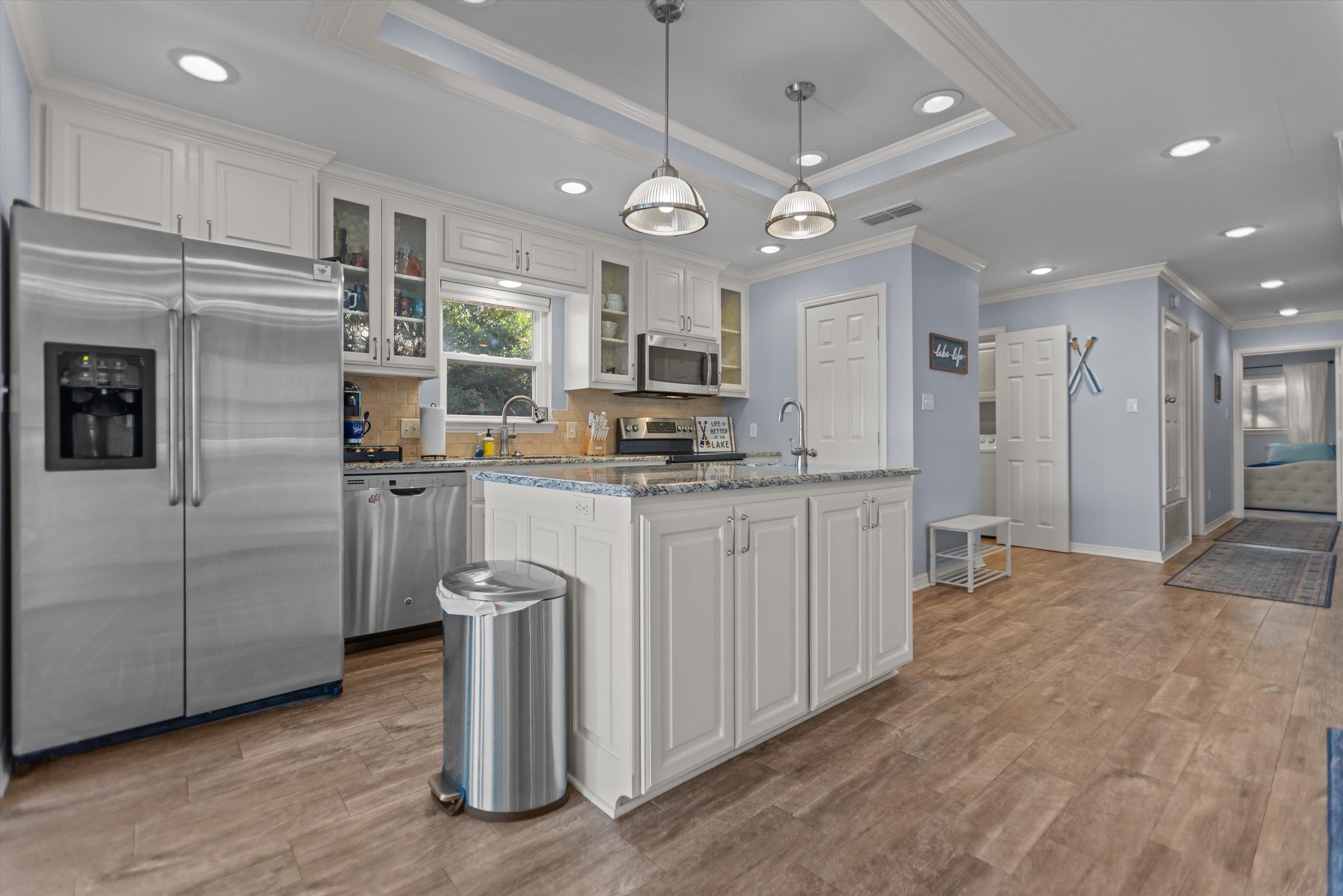 Lake Life Starts Here! Wake up to beautiful Lake Palestine views from this updated 3-bedroom, 2-bath waterfront home designed for relaxing, entertaining, and soaking up the good life. From morning coffee to sunset evenings, the spacious patio is the perfect place to enjoy sweeping water views and peaceful lake breezes. Inside, youll find thoughtful updates throughout, including a new roof (2025), complete electrical rewire, and a layout that feels both comfortable and inviting. A 2-car garage provides plenty of space for vehicles, storage, or lake toys, while the storm shelter adds extra peace of mind. Step outside and head straight to your brand-new boat dock (2025)ready for fishing, boating, and endless days on the water. Whether youre searching for a full-time waterfront home or a weekend escape, this Lake Palestine property delivers views, updates, and lifestyle in one incredible package. Come see why lake living never goes out of style.