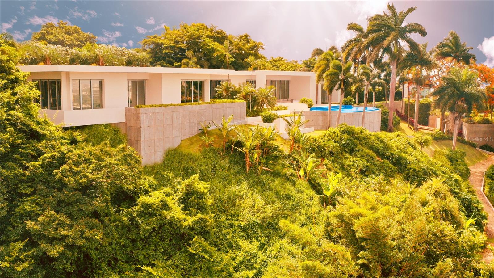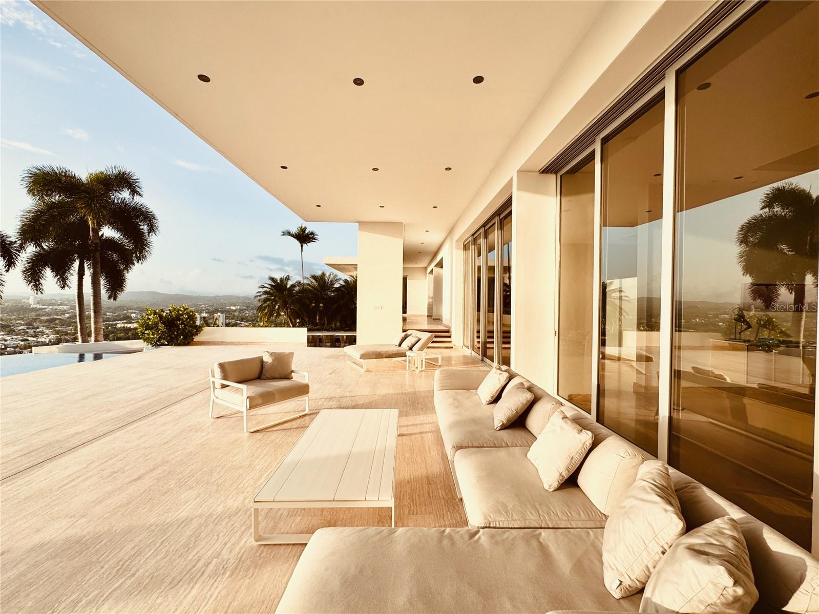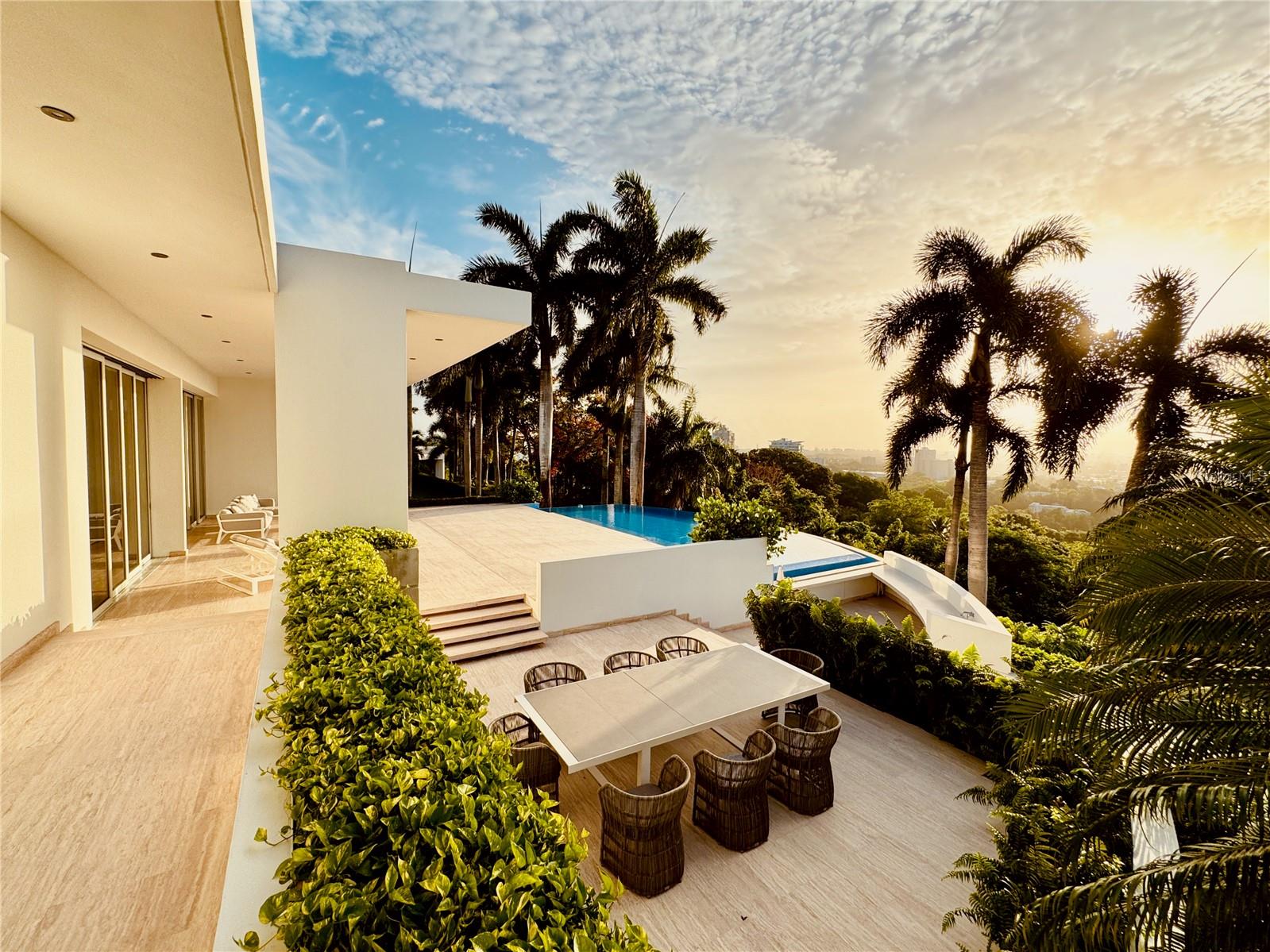 Perched on the rolling hillsides of Guaynabo, Puerto Rico, The Hilltop Residence offers a unique and unparalleled living experience where luxury meets breathtaking natural beauty. Seamlessly integrated with its surroundings, this extraordinary property captivates you from the moment you arrive.Crafted to fit the landscape, The Hilltop Residence showcases bespoke craftsmanship and elegant design. This predominantly single-story home stretches along a narrow spine, ensuring every room captures natural light and city views. High ceilings and floor-to-ceiling sliding doors pocket into the walls, blurring the lines between indoor and outdoor spaces and creating a harmonious flow throughout the home.With 7,306 sq. ft. of indoor living space and 4,296 sq. ft. of outdoor areas, the property boasts a total livable space of 11,602 sq. ft. Expansive, open-concept living areas extend effortlessly onto vast terraces, perfect for entertaining guests while enjoying breathtaking panoramic vistas. The infinity pool serves as the centerpiece of outdoor gatherings, offering a serene spot to lounge and soak in the stunning scenery. Spanning 1.22 acres of land, The Hilltop Residence embodies elegance and features essential modern resilience. It is equipped with a robust underground cistern and full-power generator, each with dedicated rooms, ensuring uninterrupted comfort and security.Embracing tropical modernism, this custom home epitomizes elegance, sophistication, and a living experience unlike any other. Schedule a private showing today to witness firsthand the seamless blend of luxury and natural beauty that defines The Hilltop Residence.