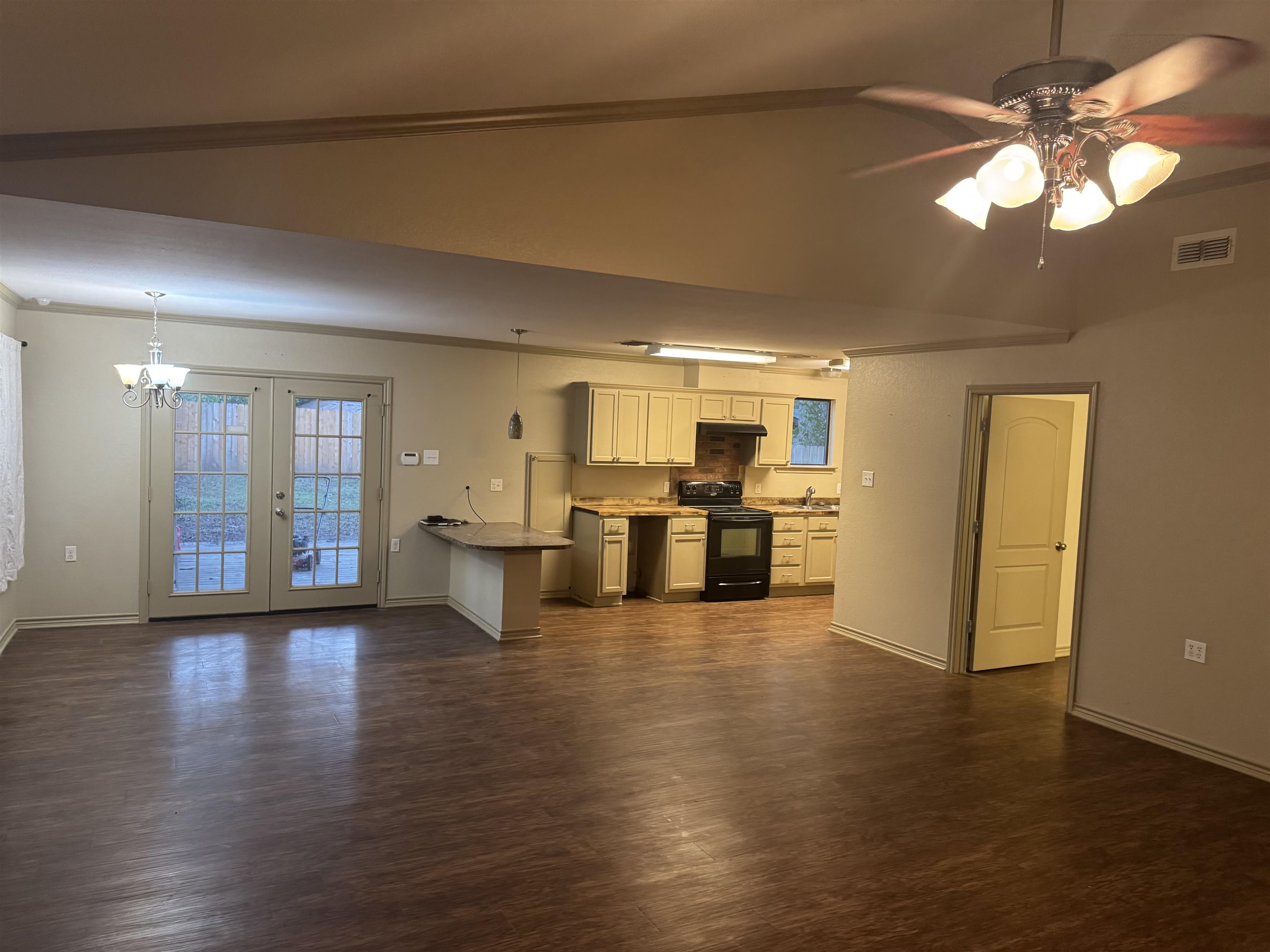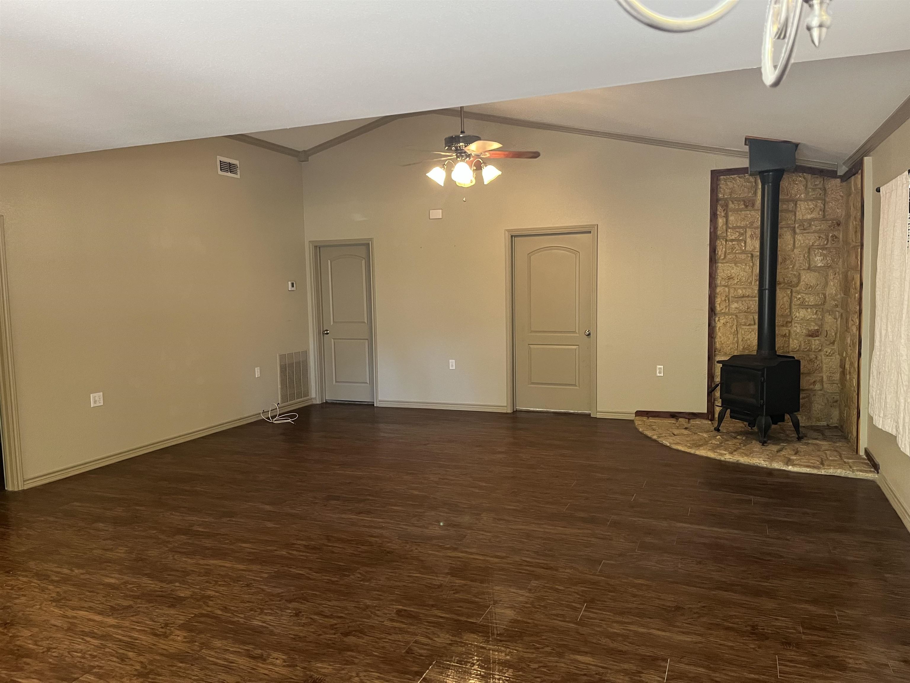 Wow! Must see Barndominium in a great location on the corner of 2012 & 918. Very well keep 2/1 that has an open concept of the living room and Kitchen. New countertops, crown molding, French doors, custom cut blinds, new septic system, carport with storage building with a fenced in yard. Don't miss out on this one!