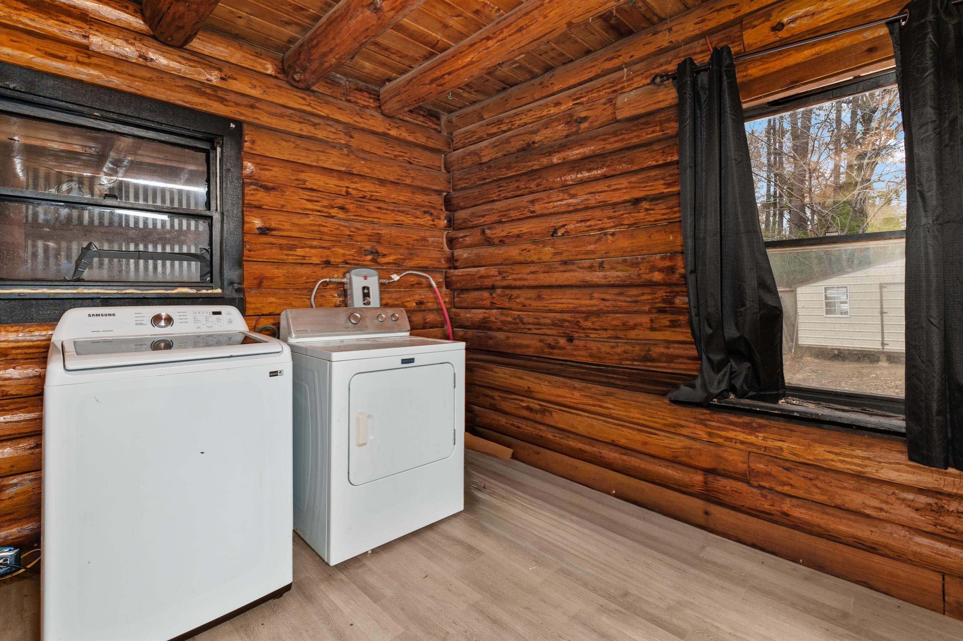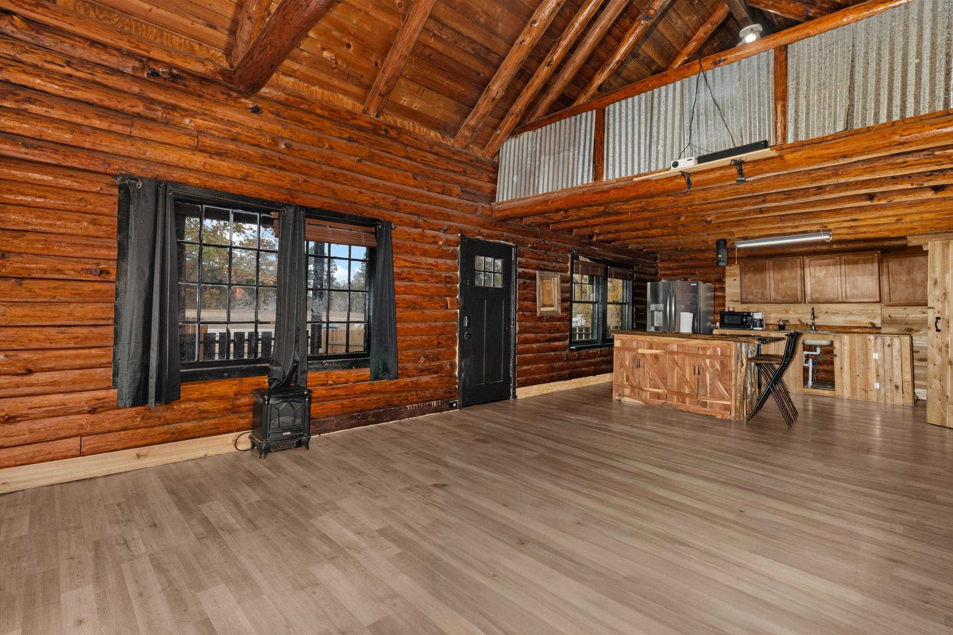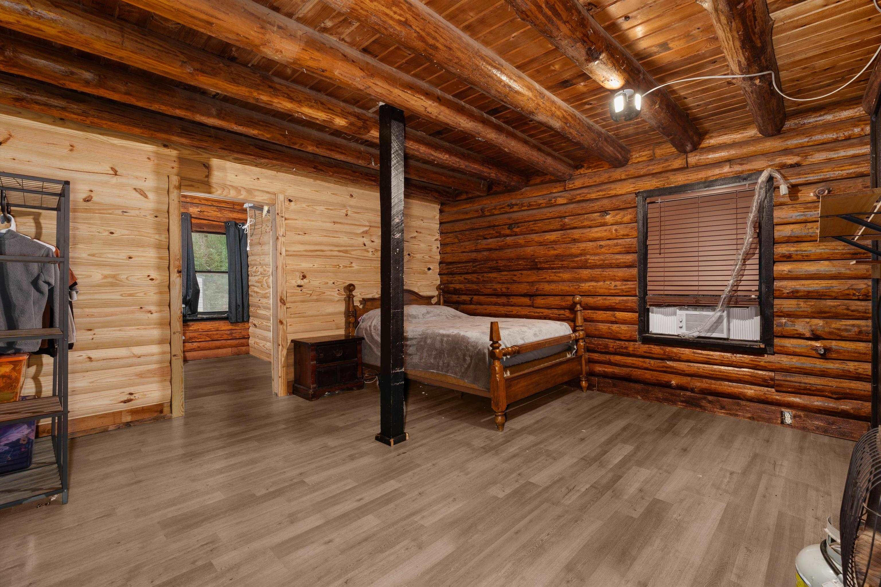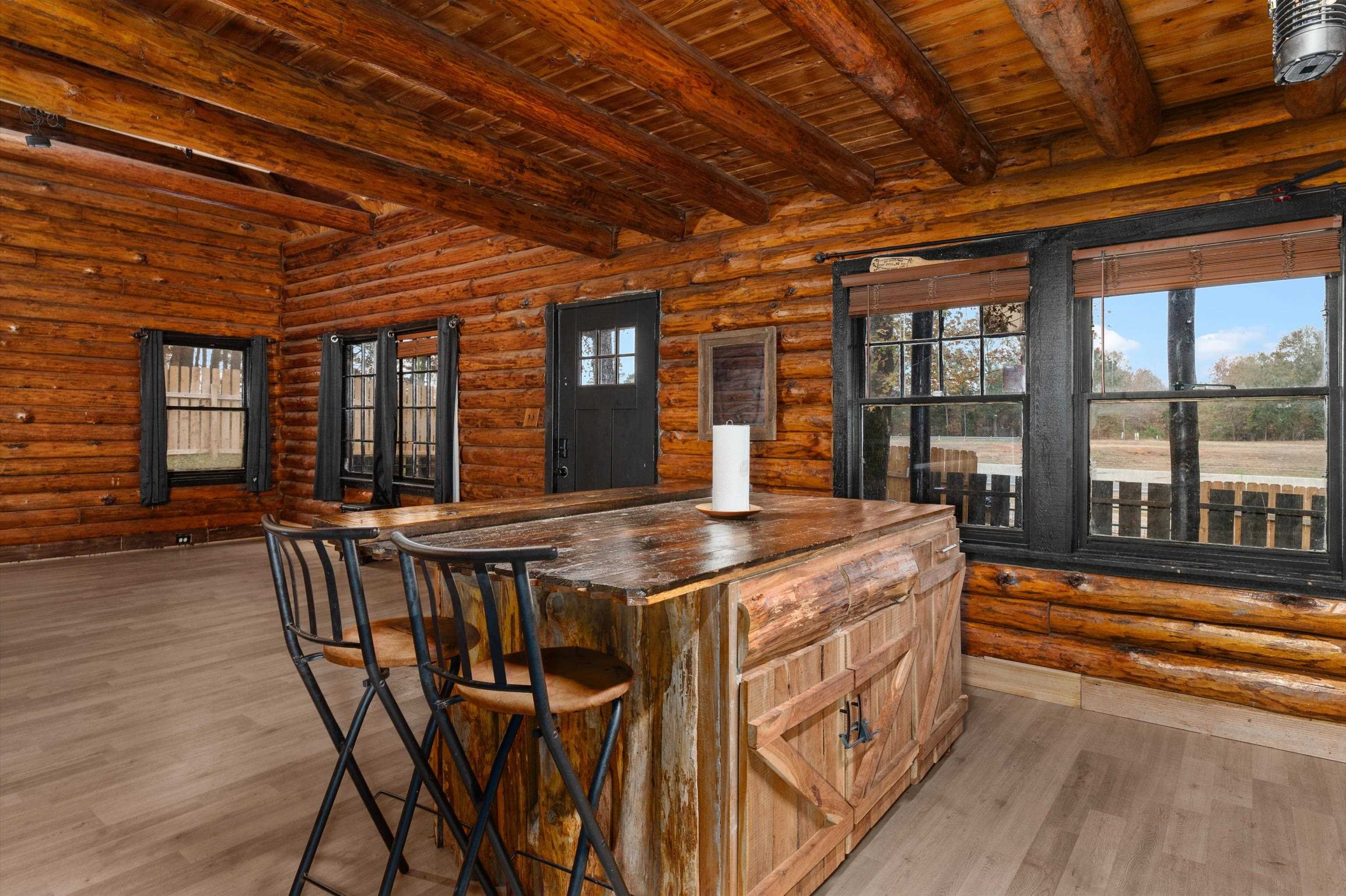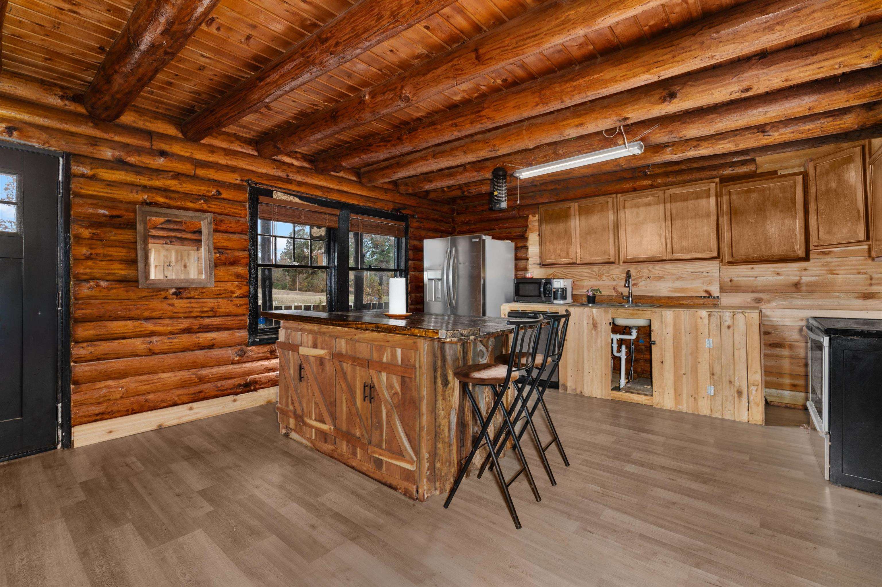 WOW!!! HUGE PRICE DROP!! SELLER SAYS BRING YOUR OFFERS!! Let your imagination run wild with this one!! Check out this charming 1.5 story log home, where country living meets timeless charm! Nestled on a manageable .31 acre lot in Sabine ISD, this cozy retreat offers the perfect touch of rustic character and peaceful living! With easy access to I-20 and just minutes from town, you'll love the country feel with convenient proximity to everything you need! Step inside and fall in love with the open concept kitchen and living area, featuring soaring ceilings that give the space an airy & inviting feel! The primary bedroom and bathroom are located downstairs, complete with a laundry area conveniently tucked inside the master bath! Upstairs you'll find 2 additional bedrooms, perfect for family, guests, or a home office setup or flex space! The home features window units throughout keeping it cool and comfortable year round! Recent updates include brand new subfloors, luxury vinyl flooring, a new reconfigured bathroom & laundry room, water lines & plumbing, tankless water heater and more improvements are done for you! There's also flexibility to customize your own closets or enjoy the open spaces just as the current owner has! The sellers have minimized and are ready to move, making this charming home prepared for it's new owners to step right in and make it their own! Make it yours today!!