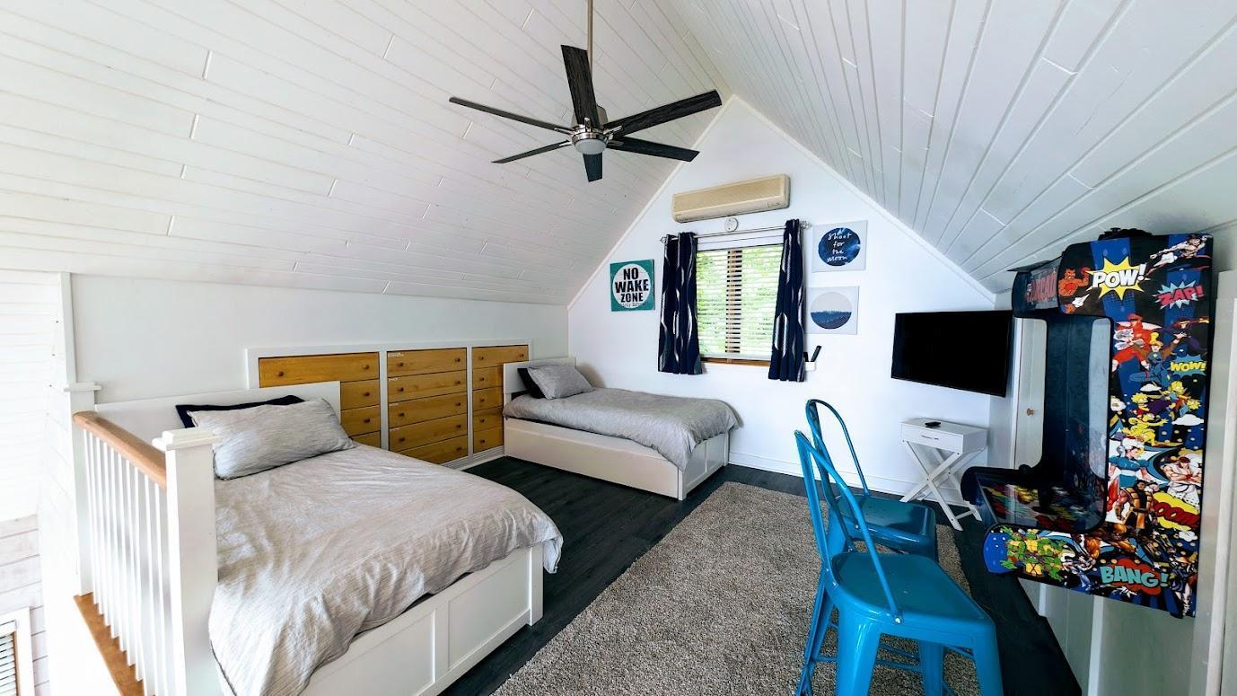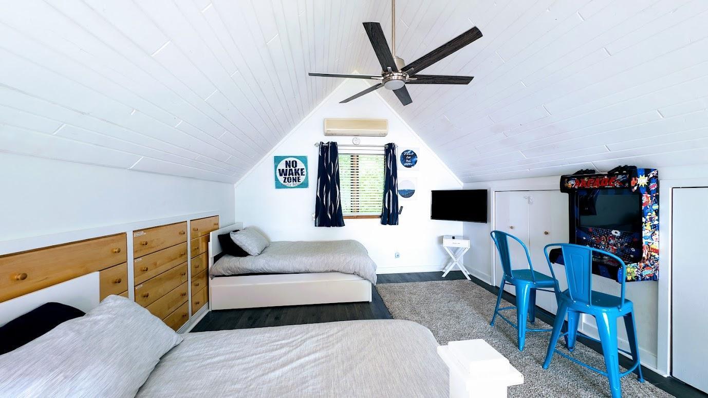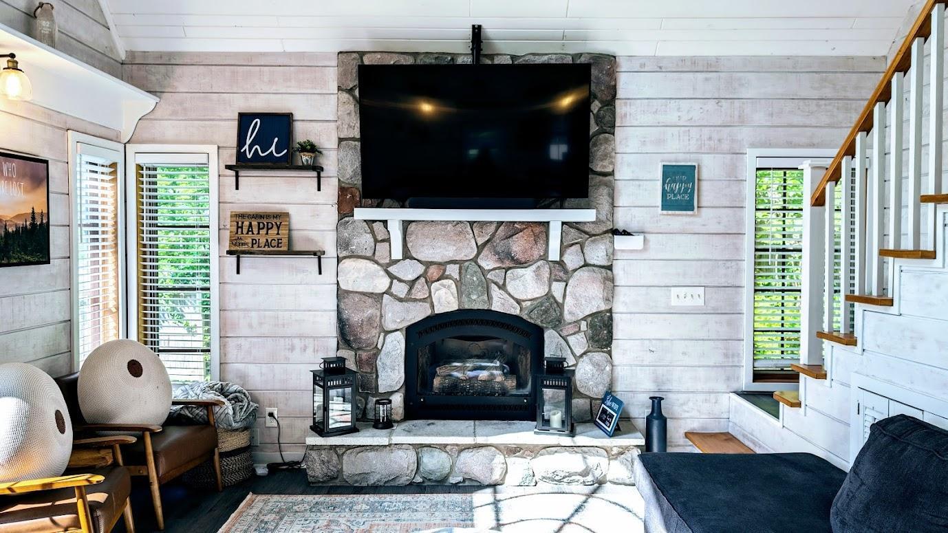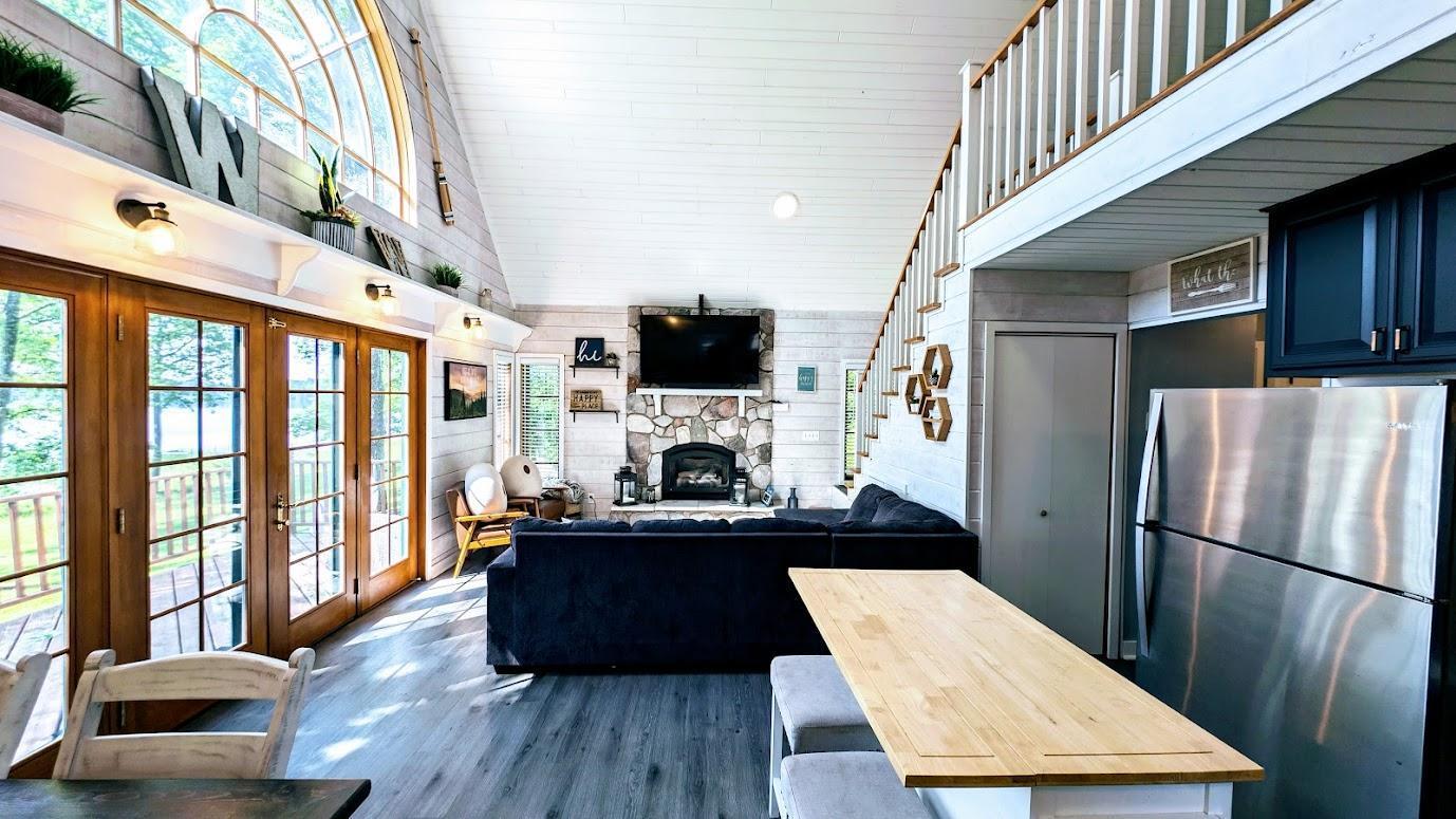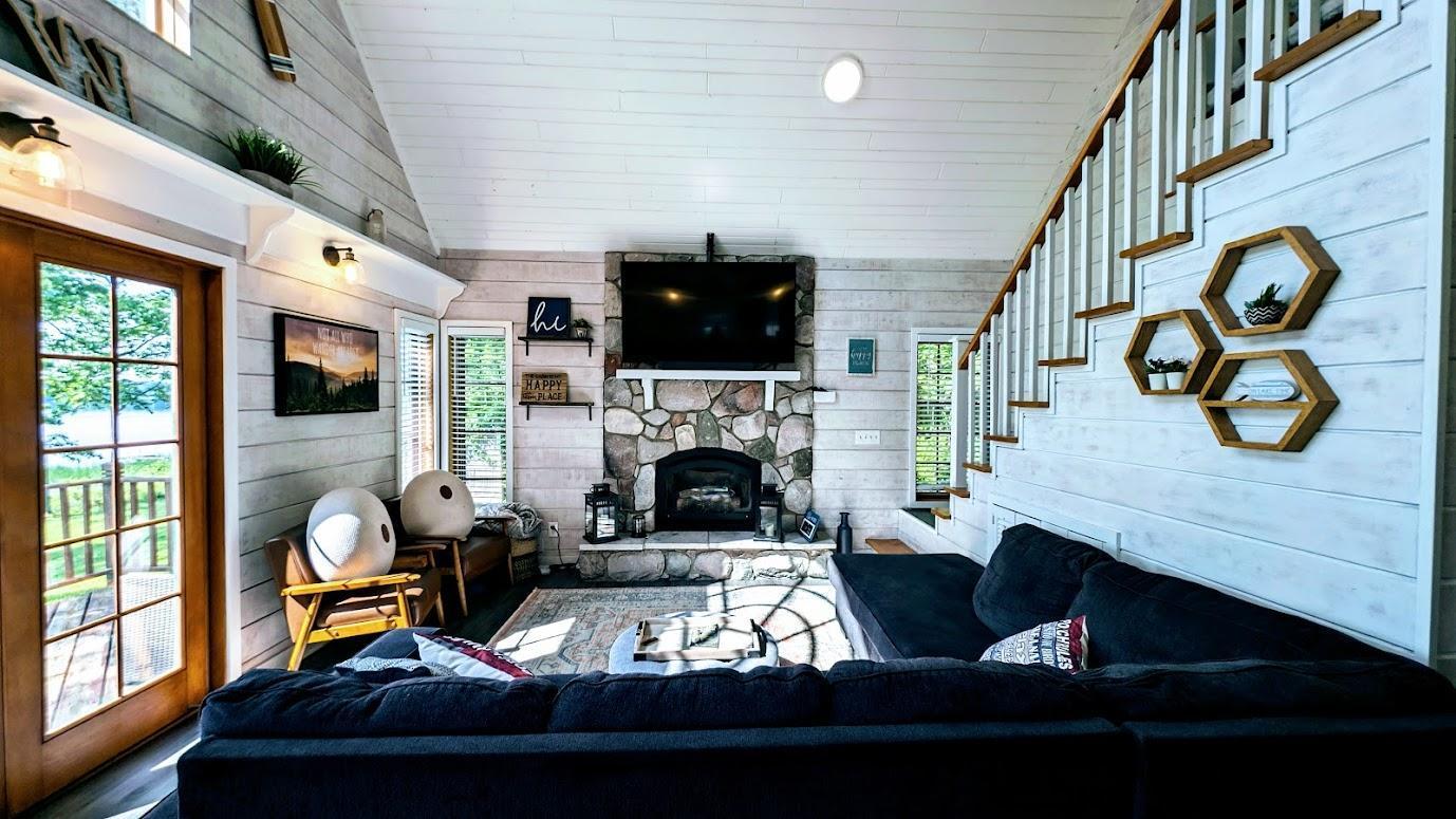 Look no further! This cozy 2-bedroom, 1-bath Wis. retreat with a loft on Dairyland Reservoir is exactly what youve been searching for. Situated on a -acre lot with 72 feet of low-elevation water frontage, this turn-key property offers stunning lake views & endless big-water recreation. Step inside to a bright, open living space featuring vaulted ceilings, a wall of windows & doors facing the lake, and a beautiful stone gas fireplaceperfect for relaxing after a day on the water. The low-maintenance cabin includes 2-bedrooms & a full bath on the main level, while the spacious loft serves as a 3rd sleeping area. Heating & cooling are efficiently handled by the gas fireplace with blower, two AC/heater units, & a mini-split system, ensuring comfort in every season. Spend summer evenings entertaining on the lakeside deck or gathering around the fire pit by the water. Come experience the lake life youve been dreaming about!