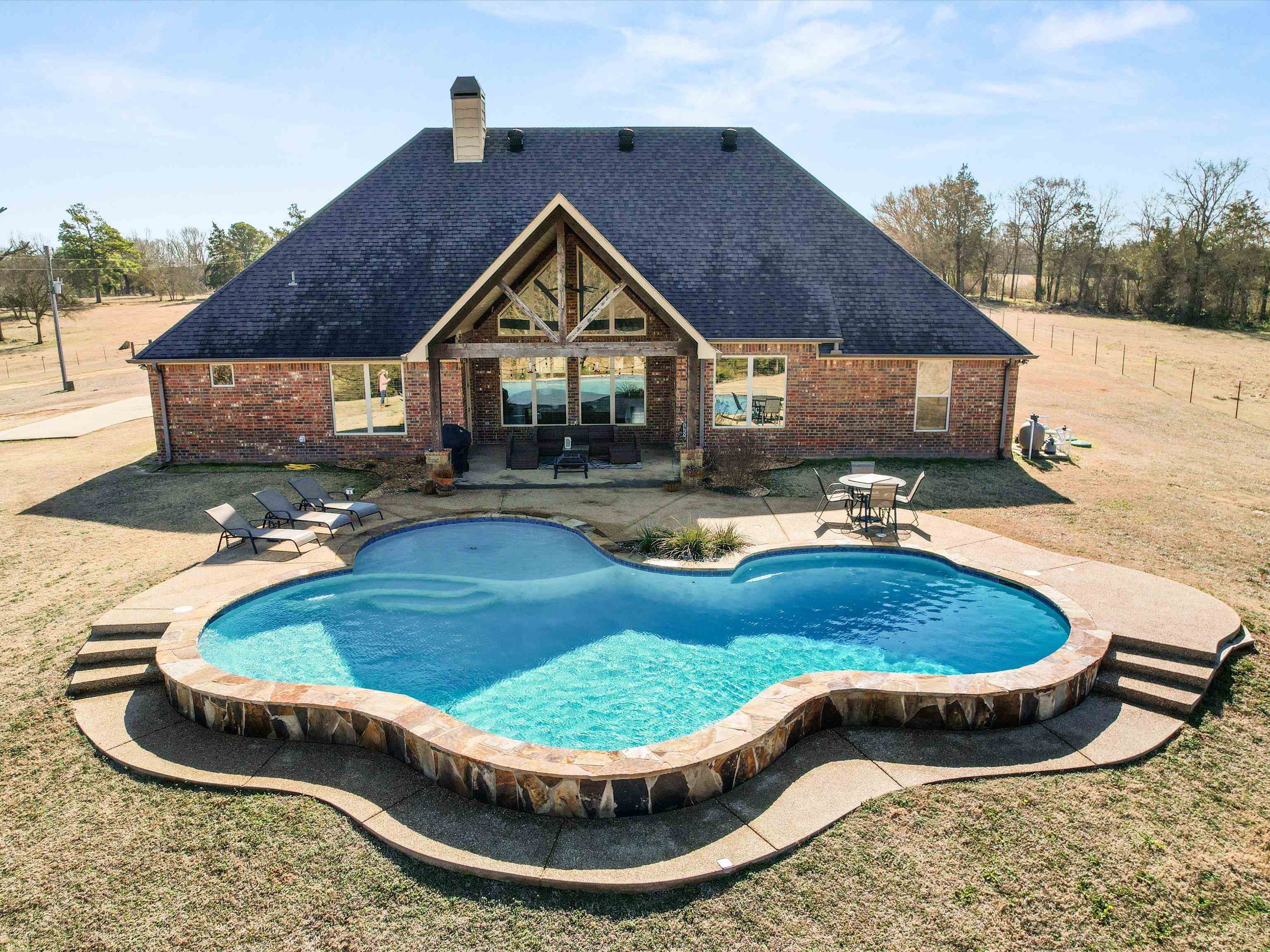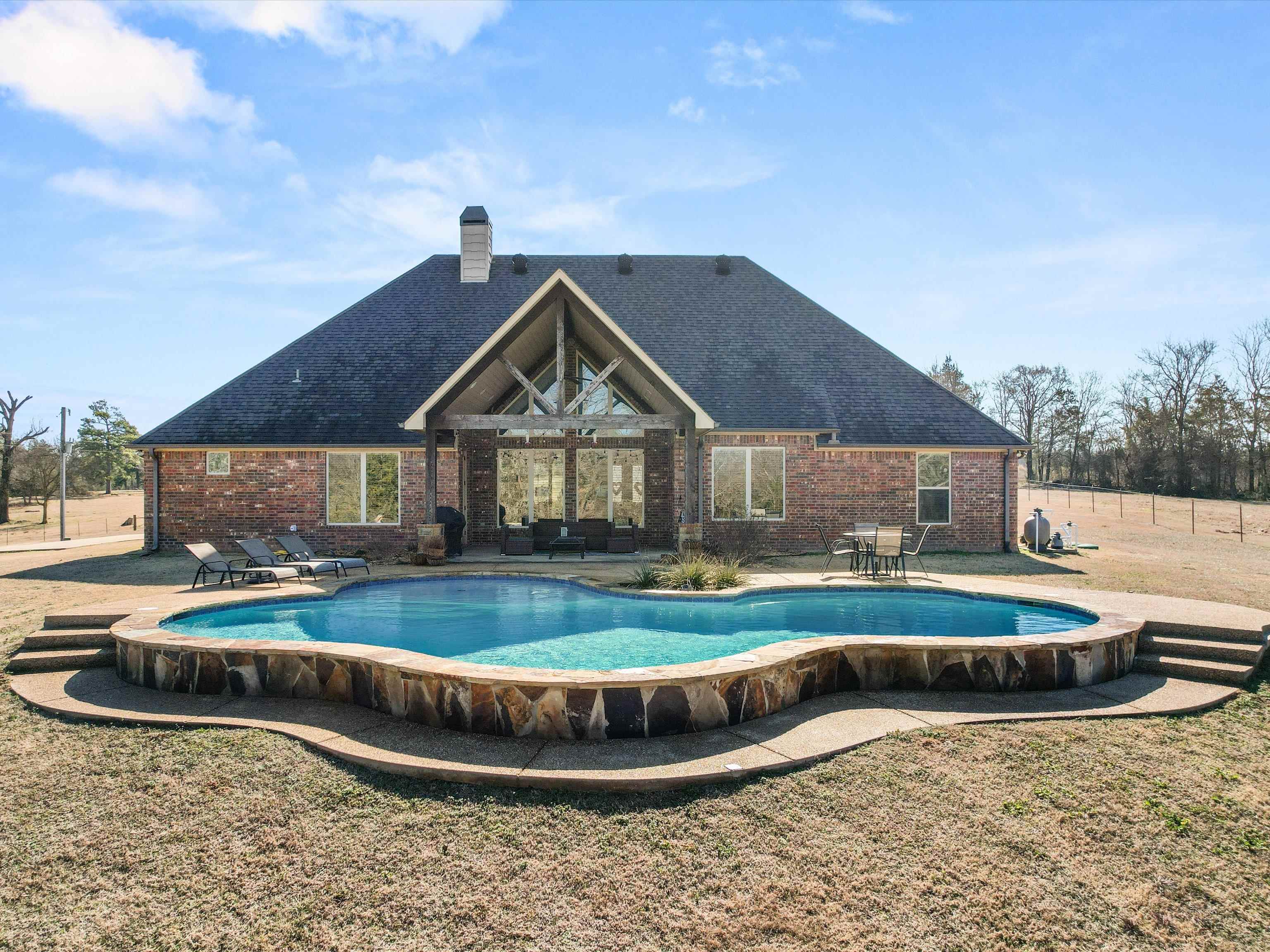 Welcome to your dream home in the heart of Northern Upshur Countywhere luxury meets tranquility. This stunning custom-built 4-bedroom, 3-bath brick residence offers the perfect blend of elegance and comfort, nestled in a peaceful setting with panoramic views on just under 55 acres. Step inside to an inviting open floor plan ideal for both everyday living and entertaining. The chefs kitchen is a culinary haven, featuring a gas stove, ample workspace, and premium finishes to inspire your inner gourmet. A thoughtfully designed split-bedroom layout ensures privacy, with the spacious primary suite serving as your personal sanctuary. Step outside to your own resort-style escape. A sparkling gunite pool overlooks scenic landscapes, creating a breathtaking backdrop for morning coffee, evening swims, or weekend gatherings. With upscale finishes, spacious living areas, and easy access to nearby amenities, this home offers the best of both worldspeaceful country living with modern convenience. Dont miss this rare opportunity to own a slice of East Texas paradise.