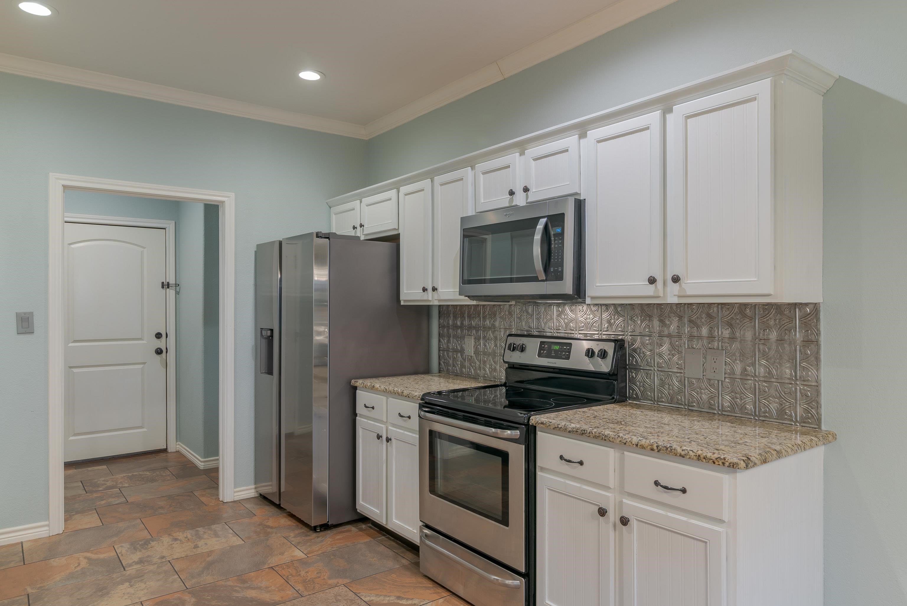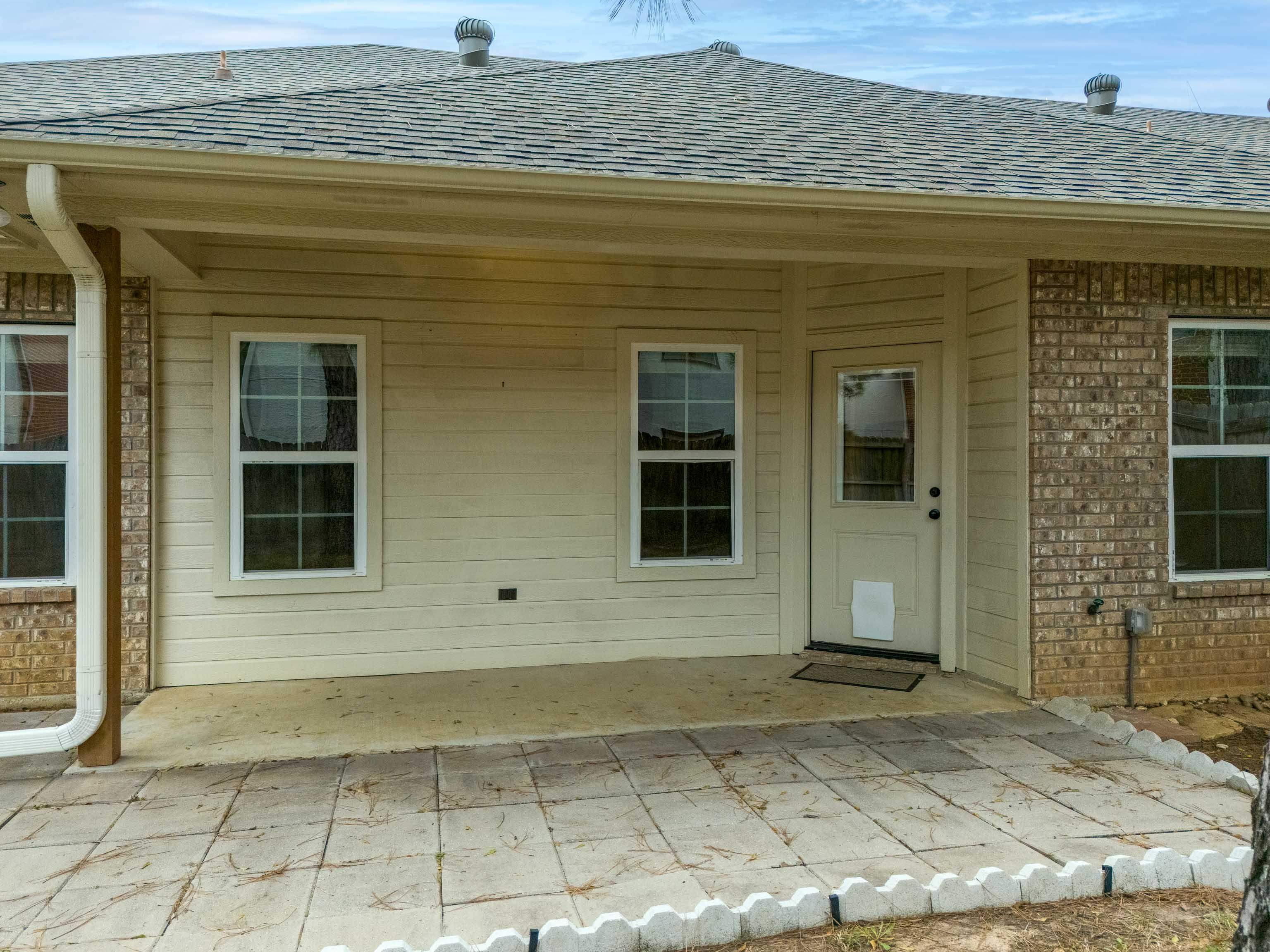 WELCOME TO 2202 WOODGROVE LN, A CUL-DE-SAC STREET. This charming brick townhome offers a large living room with high ceilings, crown molding, 2 spacious bedrooms, and 2 well-appointed bathrooms, along with a convenient 2-car garage. You'll love the neutral tones throughout, creating a warm and inviting atmosphere. The primary bedroom is exceptionally large, boasting a luxurious bathroom with a spacious shower, dual sinks, and a walk-in closet for ample storage. The thoughtful layout provides privacy with the two bedrooms located in separate hallways, making it ideal for families or guests. The wide galley kitchen is a chef's delight, featuring granite countertops, stainless steel appliances, including a refrigerator, perfect for meal preparation and entertaining guests. Off the kitchen/dining area is the back door with a pet door included, leading onto a covered patio. If you don't want the cost of an HOA but the ease of low maintenance, look no further; this could be the one. This location is so convenient to get in and out of and accessible to major shopping areas. Don't miss this fantastic opportunity to own a beautiful home in a great location!